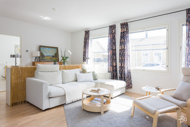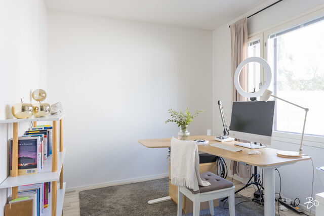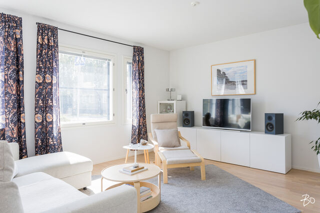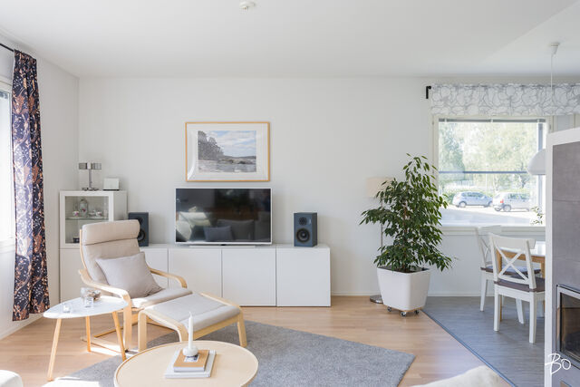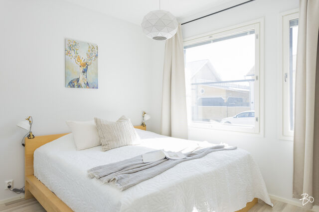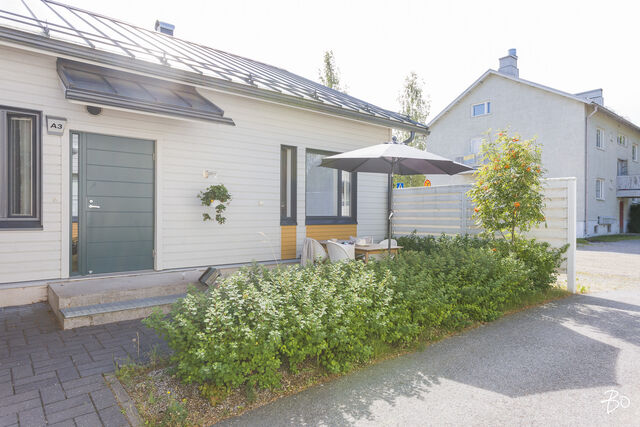 Vuonna 2014 valmistunut koti yhdistää käytännöllisyyden ja modernin tyylin. Tämä tilava asunto tarjoaa erinomaiset puitteet perhe-elämälle. Keittiö sijaitsee olohuoneen vieressä, mikä tekee kokonaisuudesta toimivan ja arjesta sujuvaa. Kolme makuuhuonetta takaavat jokaiselle oman rauhallisen tilansa. Asunnossa on lisäksi tilava kylpyhuone ja sauna sekä erillinen wc. Yhden kerroksen ratkaisu tekee asumisesta sujuvaa ja esteetöntä.
