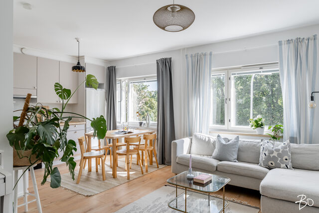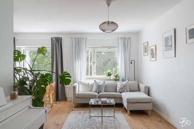 Erittäin rauhaisan sijainnin, loistavien ulkoilumahdollisuuksien ja hyvien kulkuyhteyksien ansiosta, on Hermanni fantastinen paikka viihtyä ja asua. Tässä huoneistossa on tehty muutostöitä, jossa on muokattu alkuperäistä pohjaa toimivammaksi. Nykyisellään huoneistossa on yksi suuri makuuhuone, avokeittiö, olohuone sekä makuuhuoneen yhteydessä toinen huone, joka sopii erinomaisesti esimerkiksi etätyöpisteeksi. Eteistila jakaa asunnon järkevästi, jonka ansiosta makuuhuoneet jäävät omalle puolelle erilleen olohuoneesta.
