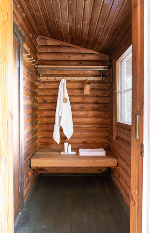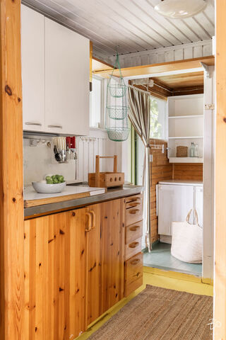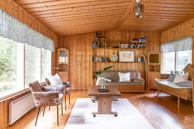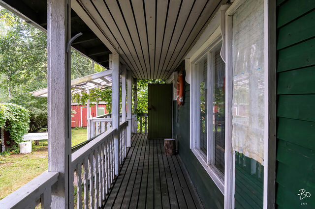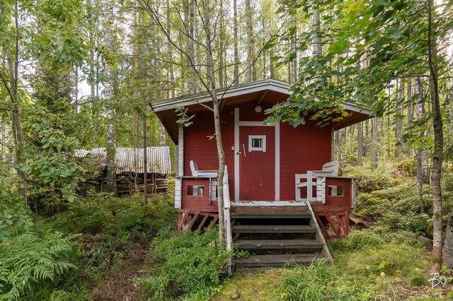 Tämä Loviisan Lappomissa omalla tontilla sijaitseva kesäpaikka käsittää mökin, saunan, aitan, venekatoksen ja varastoja. Mökistä löytyy keittiö, yksi makuuhuone, ruokailutila ja tilava olohuone. Ruokailutilassa on varaava takka. Mökkiä laajennettiin vuonna 1997. Katetulta terassilta seurailet mereltä nousevaa aurinkoa. Hirsinen saunarakennus on hankittu v. 1982 ja se käsittää saunan lisäksi takkatuvan ja pukuhuoneen. Takkatuvassa mahtuu tarvittaessa yöpymään. Aittaan mahtuu parisänky.