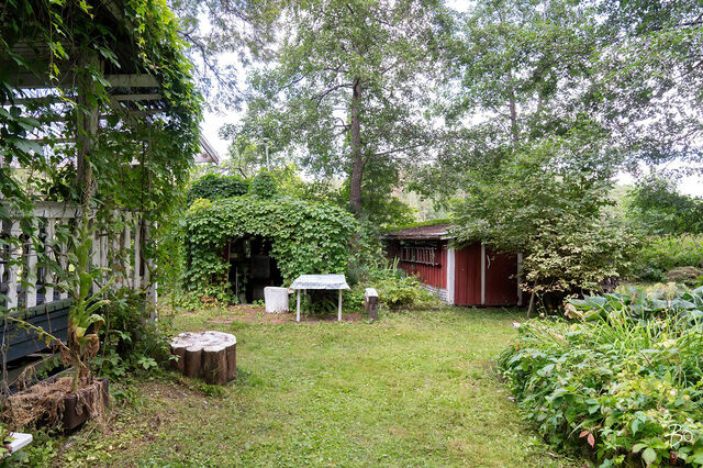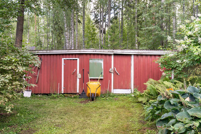 Pihaan sopii mukavasti useampikin auto ja sinne on istutettu aikojen saatossa paljon erilaisia perennoja ja pensaita. Sieni- ja marjamaat löytyvät ihan nurkalta. Kiinteistön toisella sivulla ei ole naapuria: Alue on merkitty karttaan kaupungin virkistysalueeksi. Veneelle löytyy paikka betonilaiturin viereltä sekä venevalkamasta venekatoksen suojista.