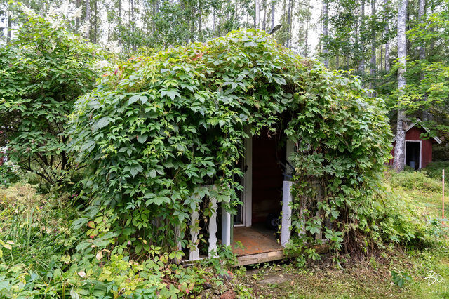 Pihalle on istutettu aikojen saatossa paljon erilaisia perennoja ja pensaita. Sienet ja mustikat löytyvät ihan nurkalta.
