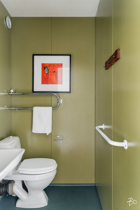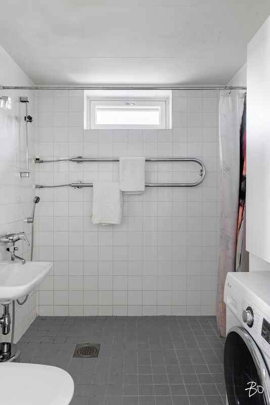 Makuuhuoneen vieressä vaatehuone ja lisäksi säilytystilat makuuhuoneessa ovat todella hyvät: koko seinän levyinen kaapisto. Erillinen WC löytyy makuuhuoneen yhteydestä. Ikkunallisessa kylpyhuoneessa on toinen wc, suihku ja hyvin tilaa pyykkihuollolle.