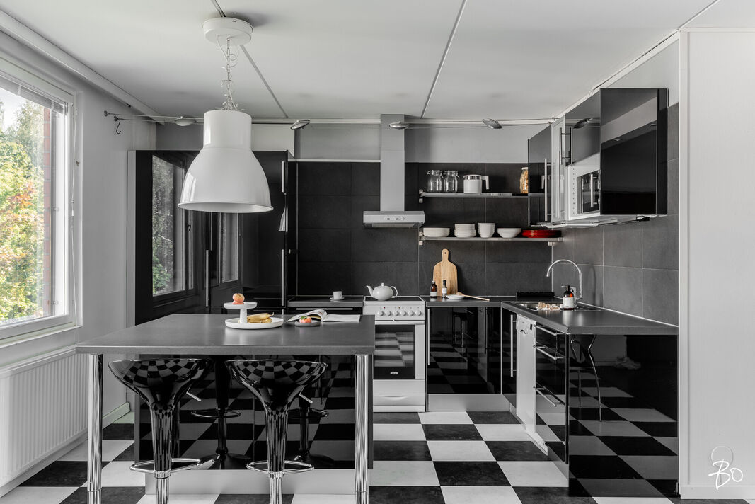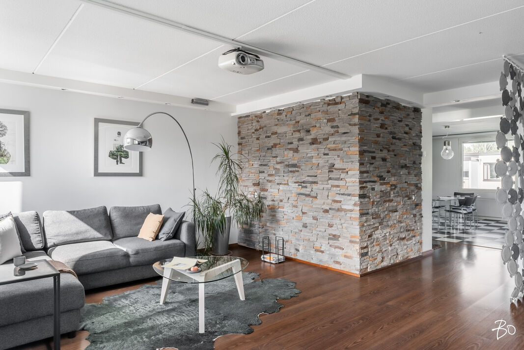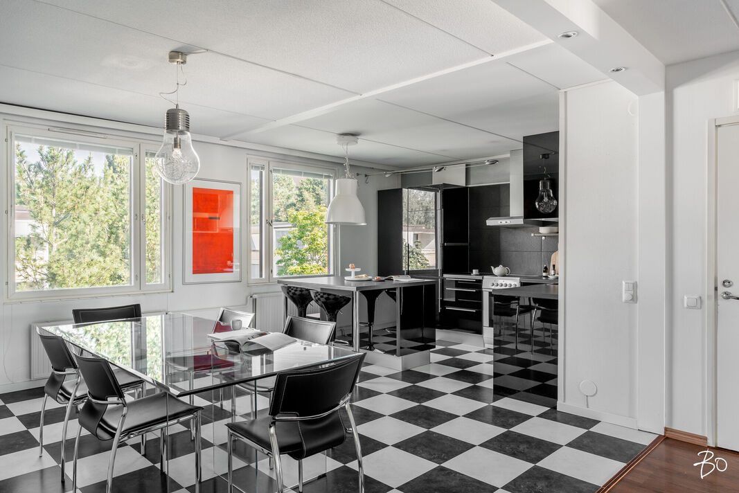 Tämä koti avautuu heti vaikutuksen tekemällä, kun näkee ison, kiiltävän keittiön, ison saarekkeen ja tilavan ruokailutilan, jonka lattia on shakkiruutuinen. Tilaan mahtuu suurempikin ruokailupöytä nautinnollisiin hetkiin. Suuren olohuoneen seinällä on vaikuttava sisustuskivi ja valaistus lisää viihtyvyyttä! Olohuoneen jatkeena on lasitettu eteläparveke.