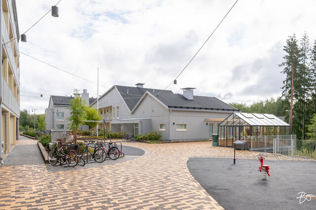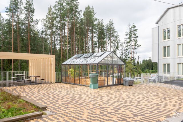 Taloyhtiön asukkaiden käyttöön on tarjolla mm. pieniä kasvihuoneita, joihin on mahdollista perustaa vaikkapa oma hyötykasvipuutarha.