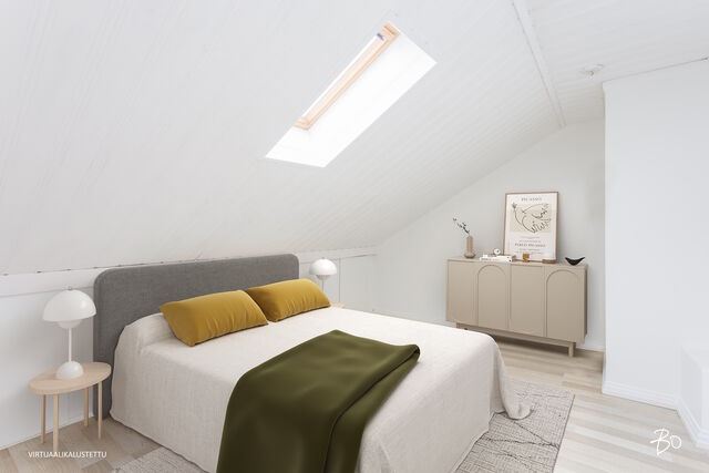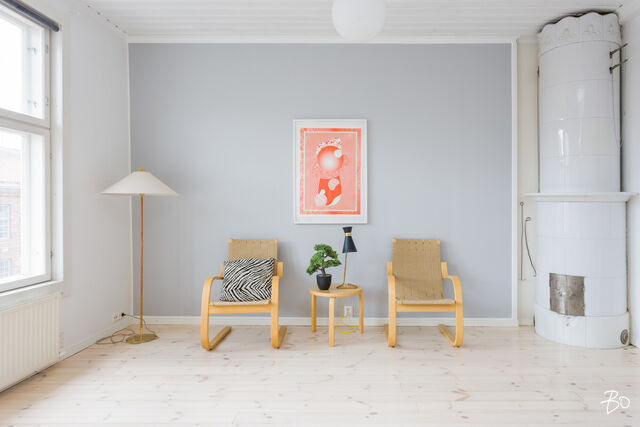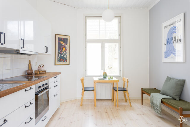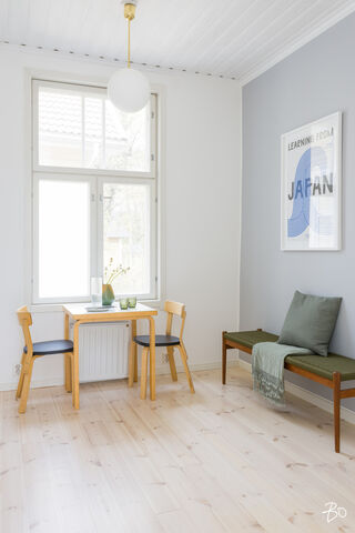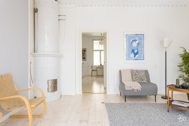 Koti hurmaa ensi silmäyksellä. Vaaleat sävyt, klassinen materiaalien valinta ja runsaasti luonnonvaloa - kokonaisuus on harmoninen ja kutsuva. Olohuoneen sydämeksi kohoaa alkuperäinen kakluuni, joka tuo tilaan sekä lämpöä että luonteikasta kauneutta. Uudistettu keittiö ja kylpyhuone tuovat arkeen ripauksen ylellisyyttä, asuminen täällä on helppoa ja huolettoman kaunista.