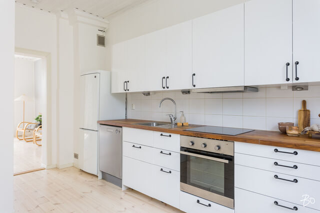 Tervetuloa ihastumaan tähän hurmaavaan, remontoituun puutalokaksioon, yhdistelmä 1900-luvun alun charmia ja nykyaikaista skandinaavista selkeyttä. Vuonna 1913 rakennetun yhtiön tunnelma on ainutlaatuinen, ja tässä kodissa se näkyy ja tuntuu jokaisessa yksityiskohdassa.