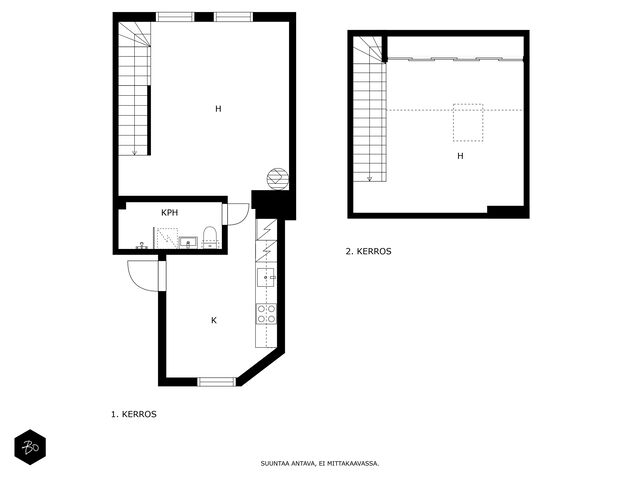 Asuintilat: alakerta 42m², yläkerta 8m².