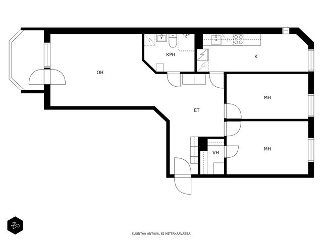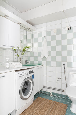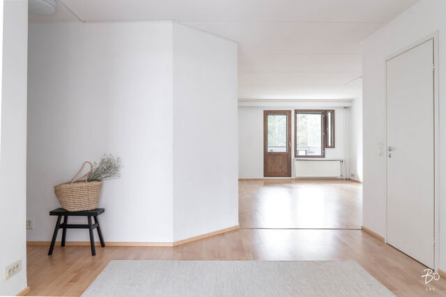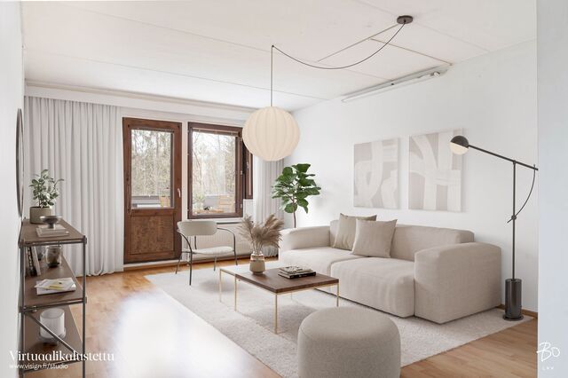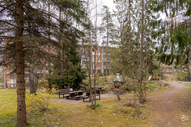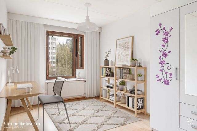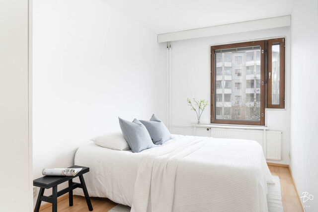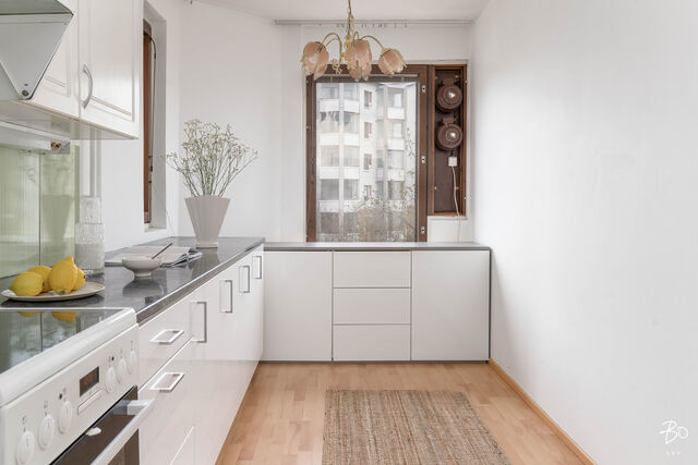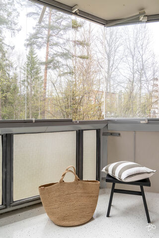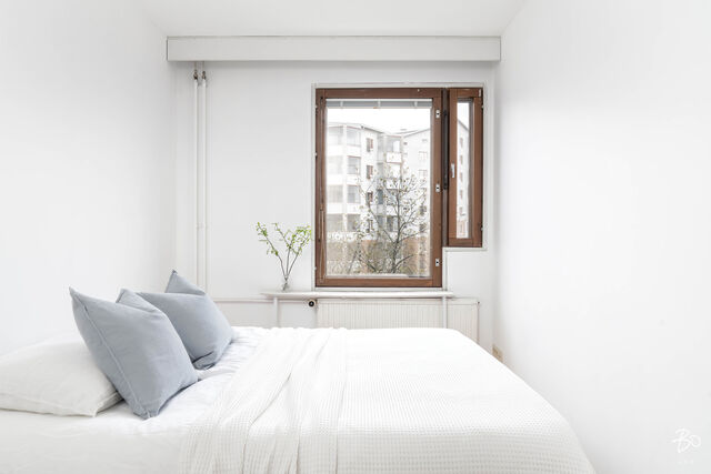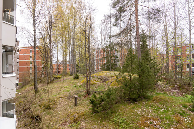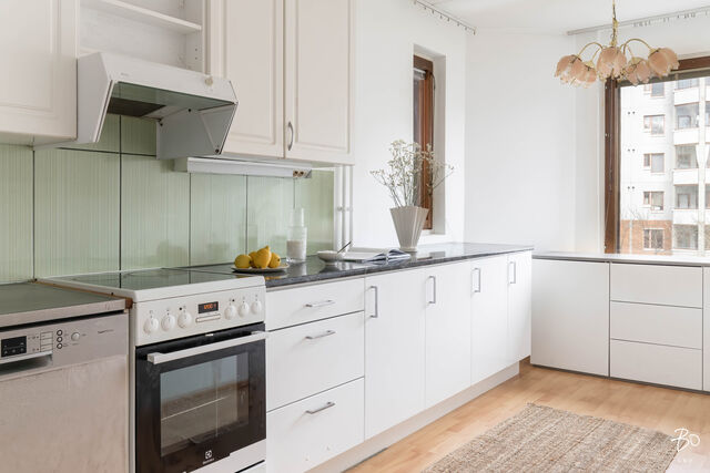 Toisessa kerroksessa sijaitsevan kodin keittiö on valoisa ja käytännöllinen. Keittiön ikkunat avautuvat kahteen eri suuntaan tuoden kauniisti luonnonvaloa sisälle ja runsaat kaapistot vastaavat vaativammankin kokin tarpeisiin. Tilavasta olohuoneesta pääsee kätevästi viihtyisälle länteen päin avautuvalle parvekkeelle, ja makuuhuoneet ovat juuri sopivan kokoisia monipuoliseen käyttöön. Siistikuntoinen kylpyhuone, joka on remontoitu 2014, hurmaa raikkaan vihreillä ja valkoisilla seinälaatoillaan.