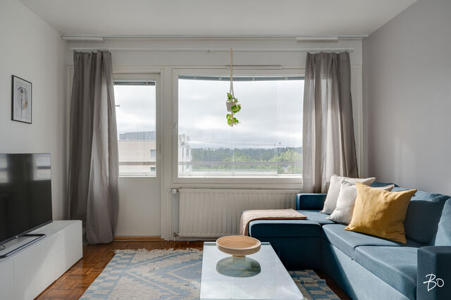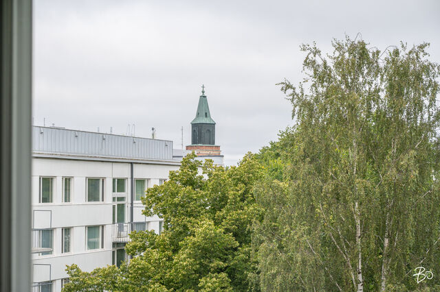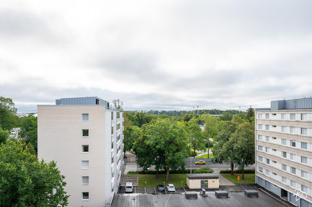 Ylimmän, seitsemännen kerroksen kaksio Kupittaanpuiston laidalta