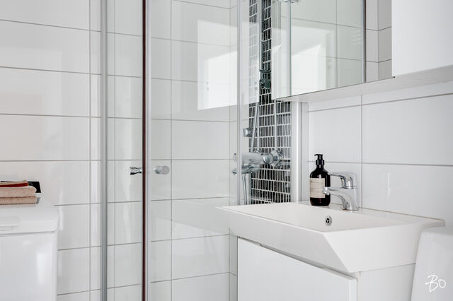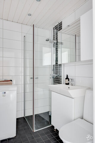Moderni kylpyhuone on remontoitu vuonna 2014 ja tilasta löytyy myös liitäntä pyykinpesukoneelle.