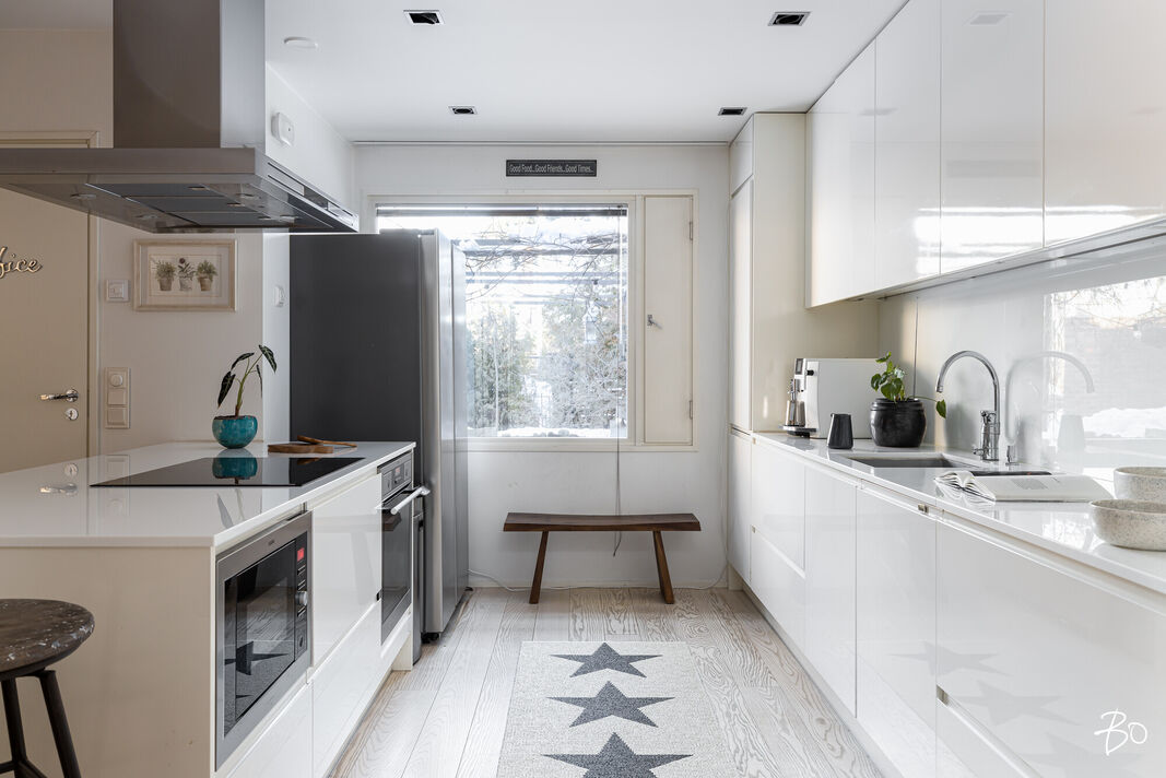 Todella mainio YKSITASOINEN rivitalon päätyhuoneisto loistavalla paikalla meren läheisyydessä (HUOM! yhtiöllä on venelaituri) on harvinaisuus, jossa kaikki 150 asuinneliötä ovat hyötykäytössä, ei portaita tai piiloneliöitä, joten tämä koti sopii mainiosti myös liikuntarajoitteiselle.