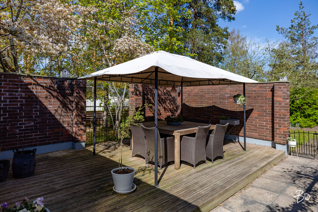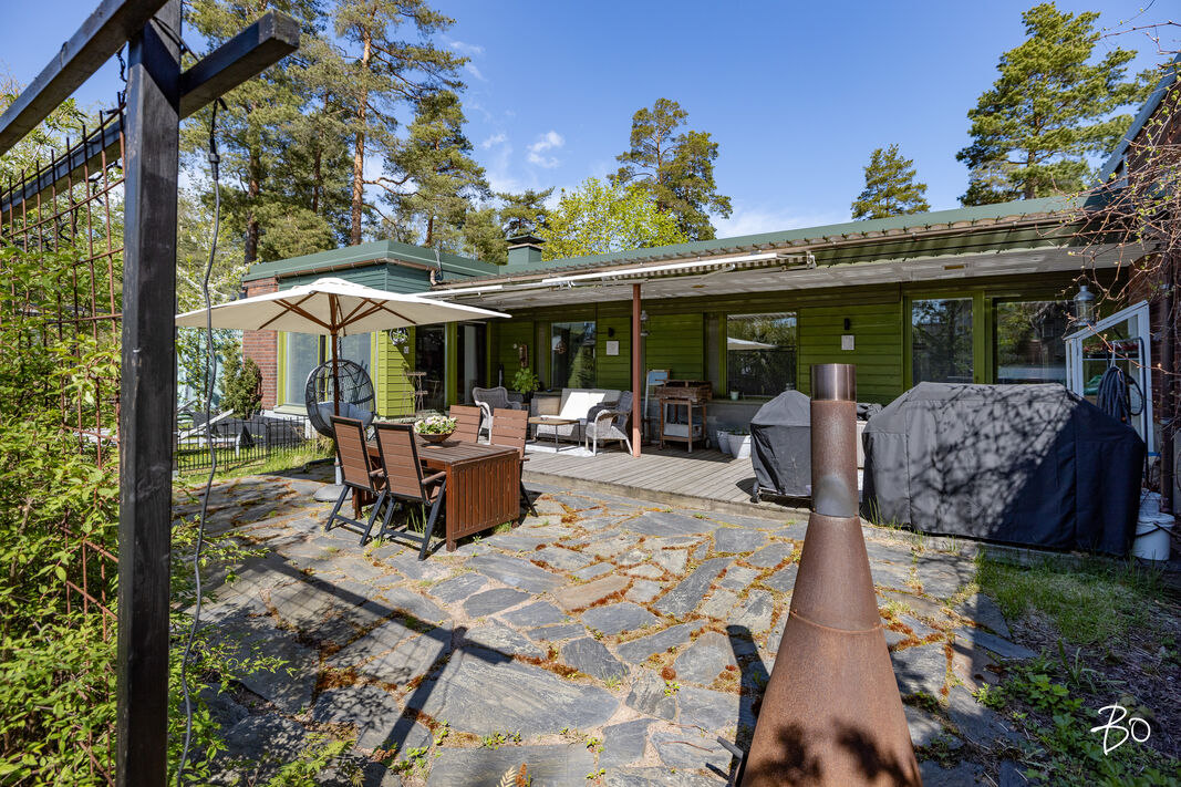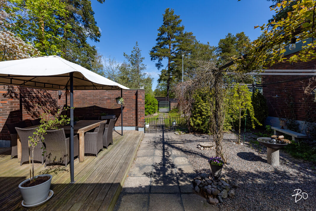 Upea, lähes 1000 m2 kokonaan aidattu ja kauniisti istutetulla privaatilla pihalla varustettu koti Espoon merellisessä Nuottaniemestä.