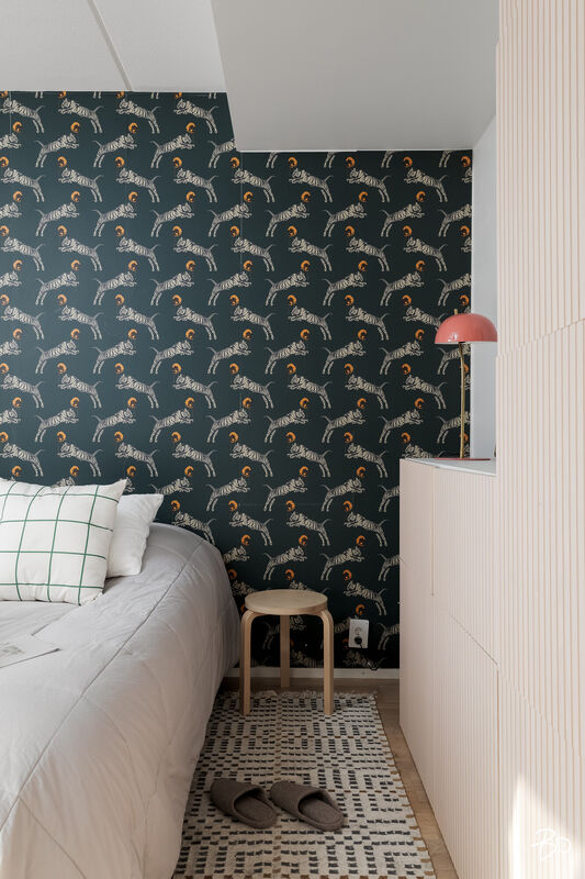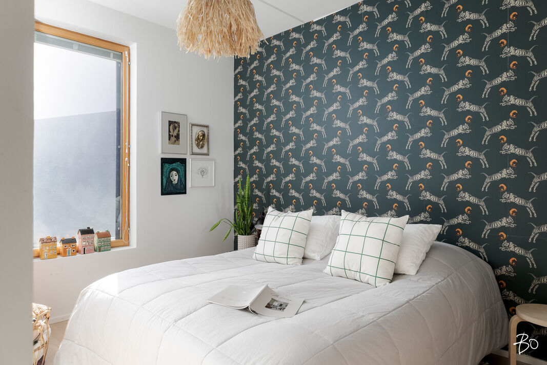 alakerran makuuhuoneen seinät tapetti ja maali