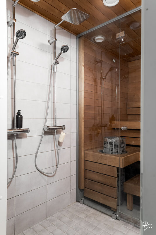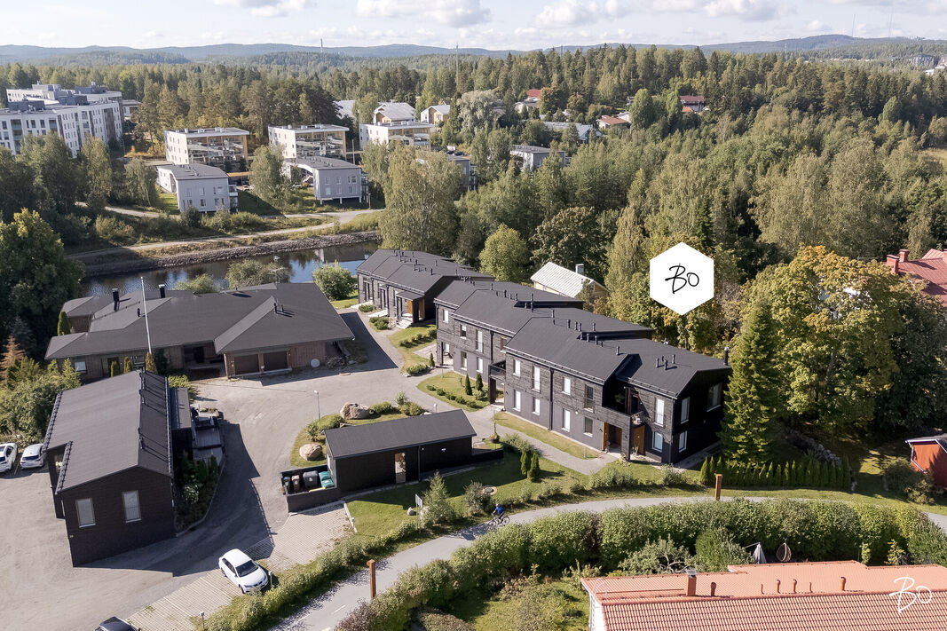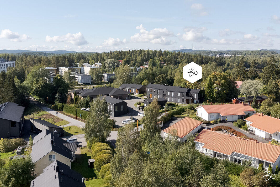 Lasitettu terassi on ehdoton helmi; se avautuu suojaisalle takapihalle, missä luonnon rauha kohtaa modernin elämäntyylin. Yhtiöllä on oma tontti, mikä takaa vakautta ja pitkäaikaista omistamista ajatellen. Lisäksi taloyhtiön asukkailla on käytössään tunnelmallinen rantasauna Äijälänsalmen rannassa. Tämä jos mikä, tuo arkeen ripauksen luksusta. Halutessasi voit hankkia jopa kaksi autopaikkaa, joten pysäköintimahdollisuudetkin ovat loistavat.