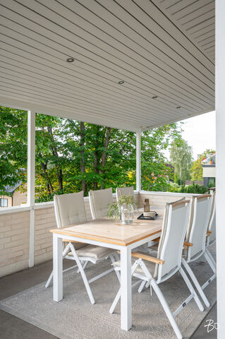 - terassin katoksen alta paneloinnin uusinta jossa jätetty rako niin että ilma pääsee kiertämään.