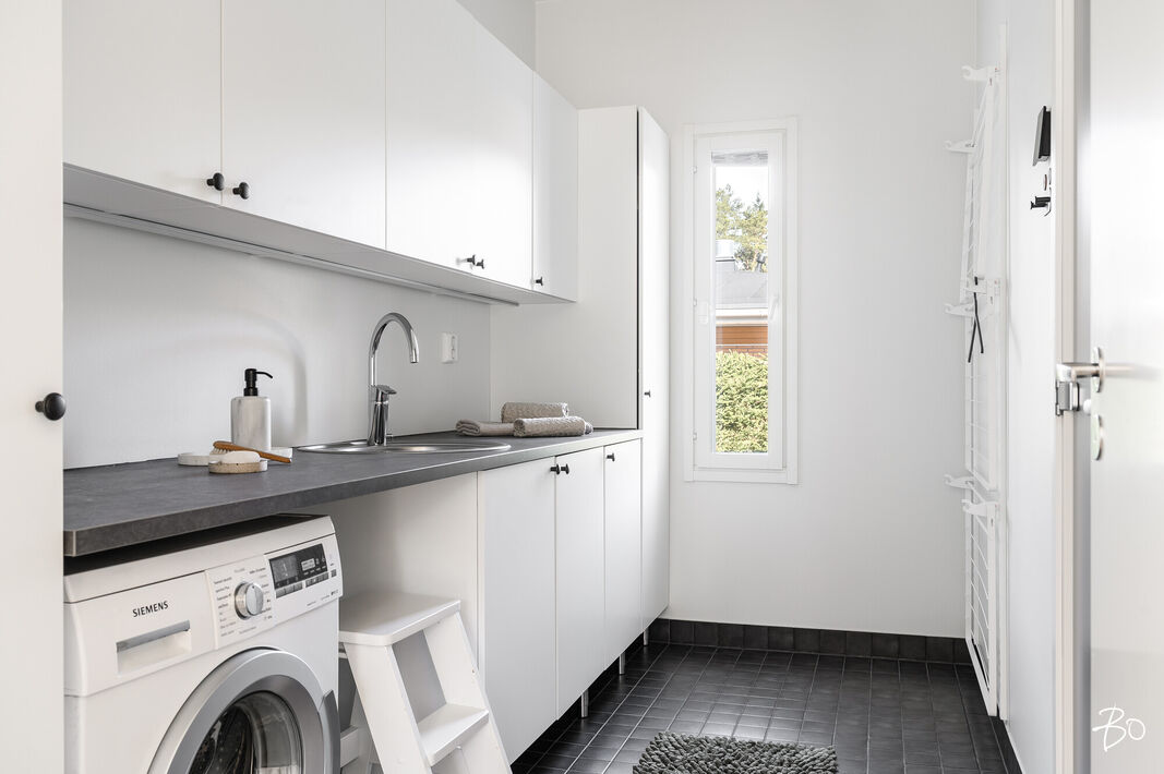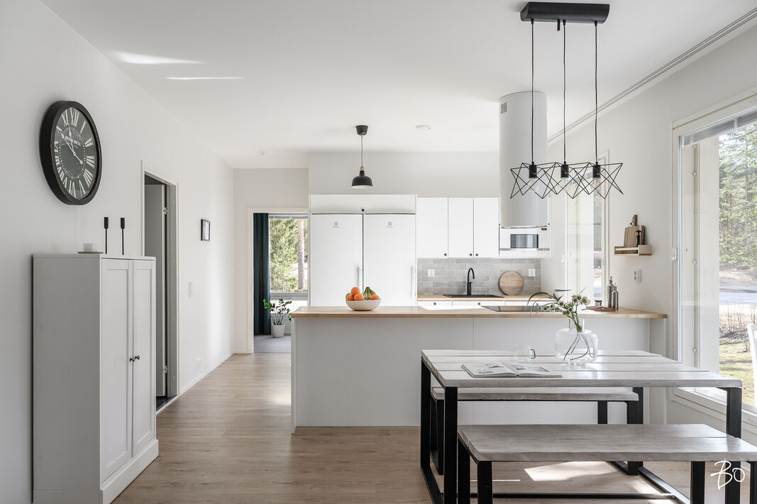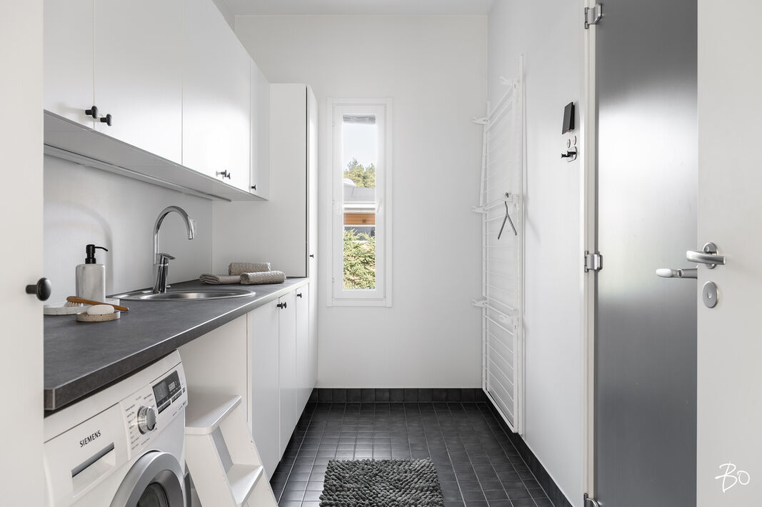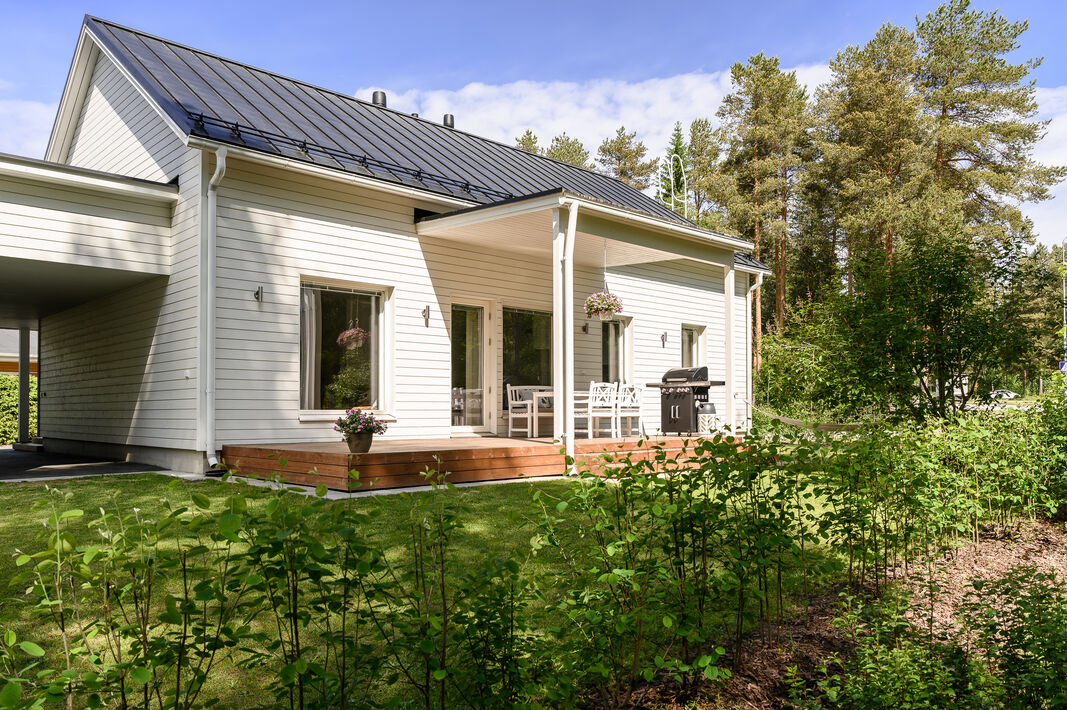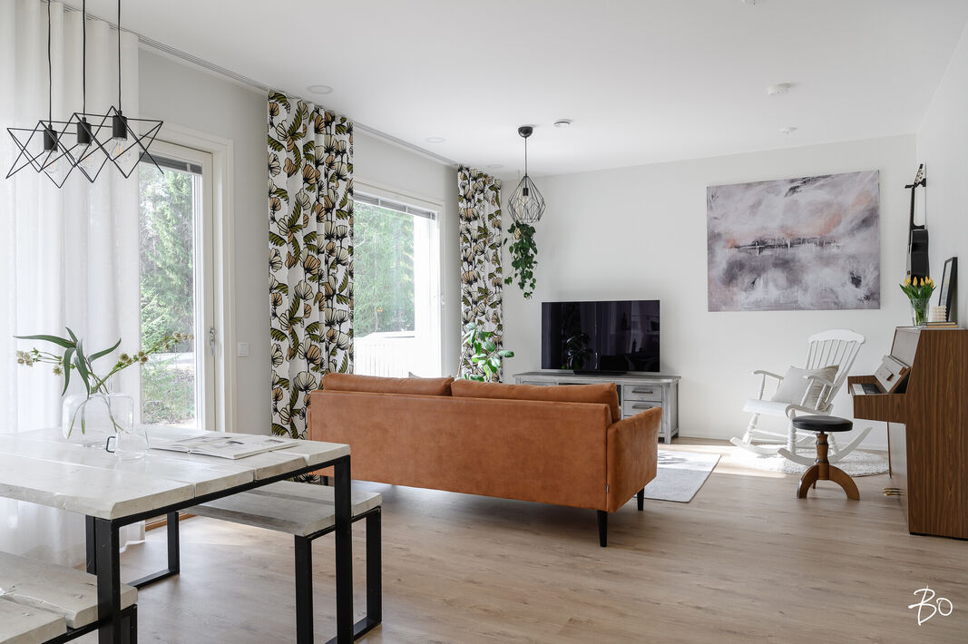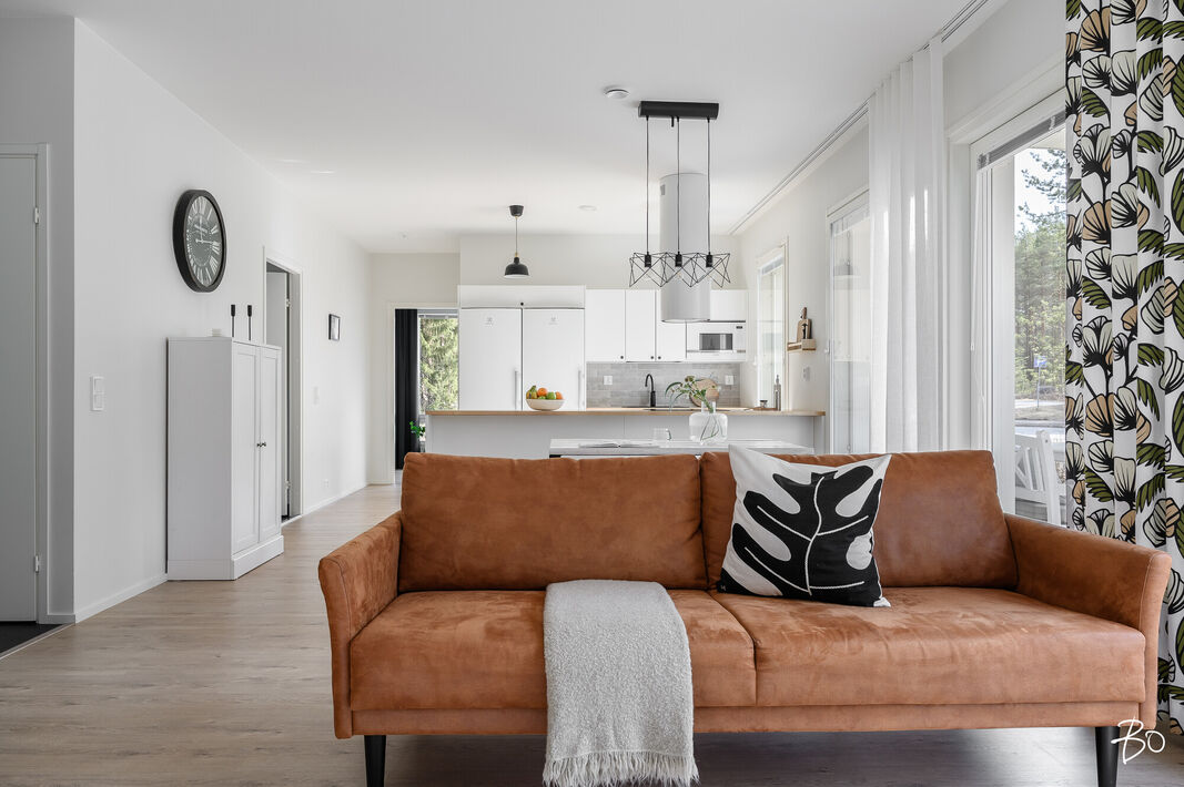 Nyt on vapautumassa seuraaville omistajille tyylikäs ja moderni kytketty omakotitalo viihtyisältä Kaakkurinkankaan alueelta aivan Sarasuon koulun ja päiväkodin vierestä. Yksitasoisen kodin 97 neliötä on käytetty fiksusti ja talon pohjaratkaisu onkin todella toimiva. Laatoitetun eteisen yhteydestä löytyvät peililiukuovikaapistot sekä erillinen arkieteinen. Olohuone, keittiö ja ruokailutila muodostavat viihtyisän tilan, johon on mukava kokoontua isommallakin porukalla. Suuret ikkunat tuovat mahtavasti valoa tilaan. Makuuhuoneita on kolme kappaletta. Kodista löytyy erillinen wc sekä erillinen kodinhoitohuone, jonka kautta on kulku tunnelmalliseen saunalla varusteltuun kylpyhuoneeseen.