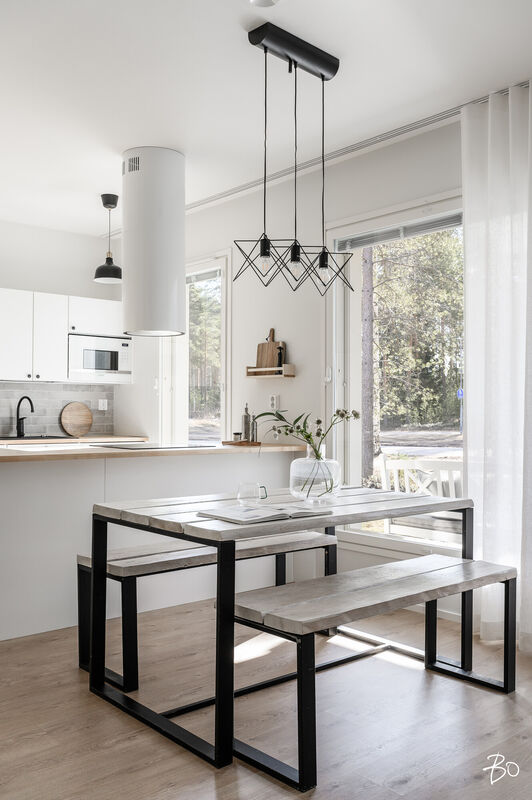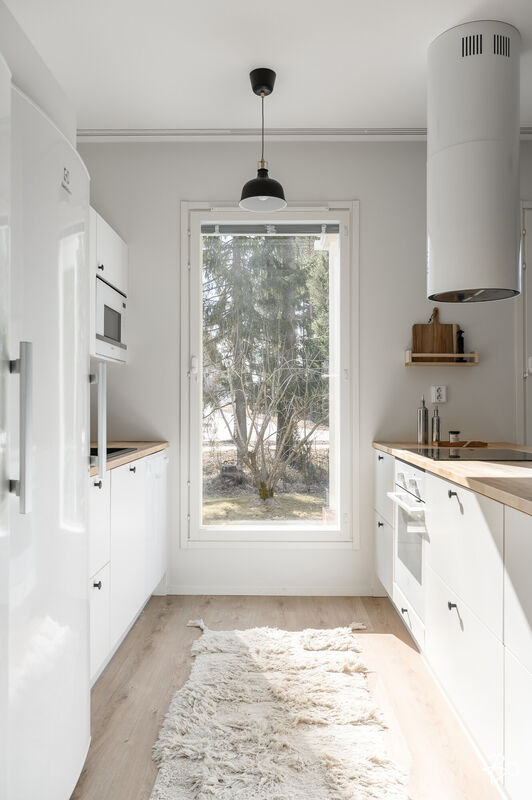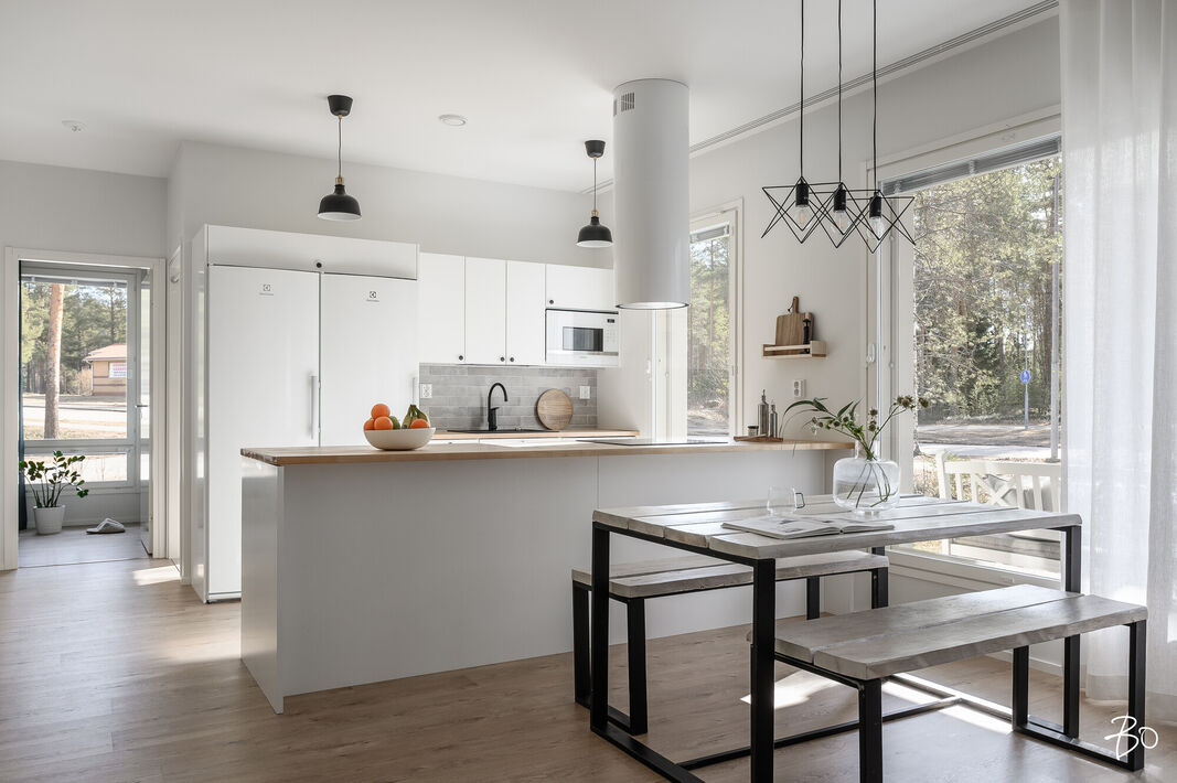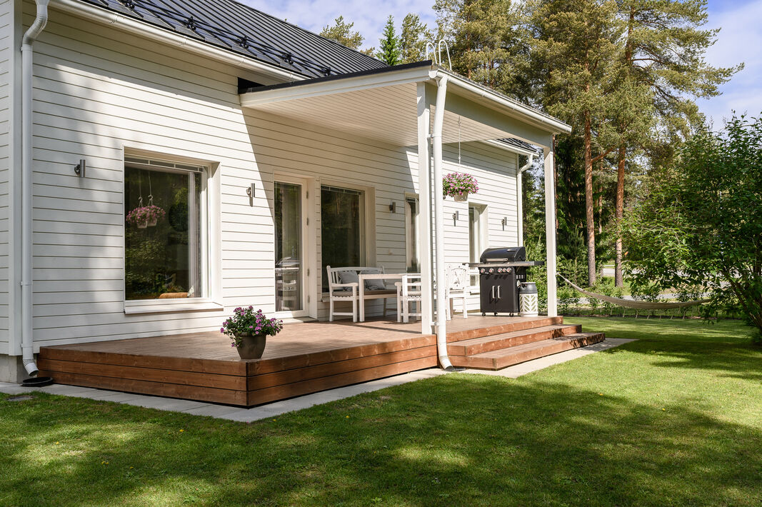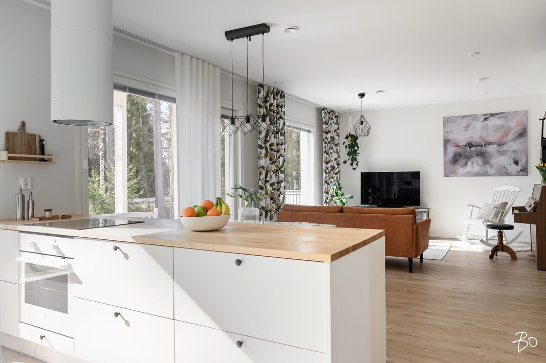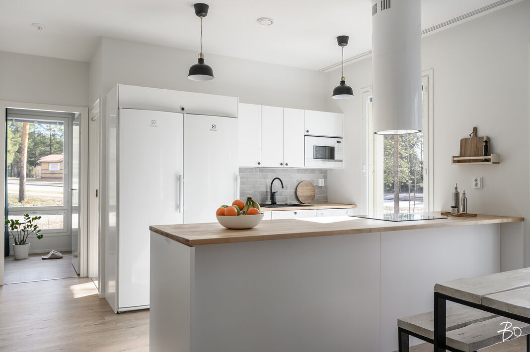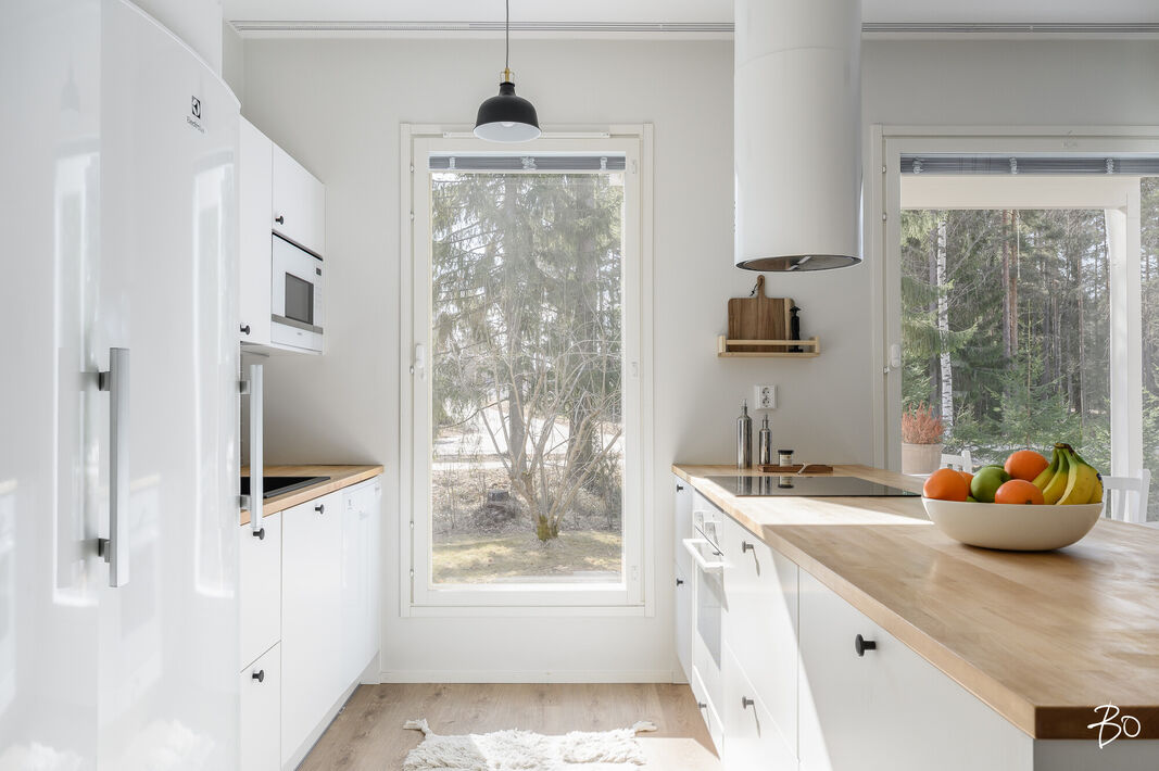 Nyt on vapautumassa seuraaville omistajille tyylikäs ja moderni kytketty omakotitalo viihtyisältä Kaakkurinkankaan alueelta aivan Sarasuon koulun ja päiväkodin vierestä. Yksitasoisen kodin 97 neliötä on käytetty fiksusti ja talon pohjaratkaisu onkin todella toimiva. Laatoitetun eteisen yhteydestä löytyvät peililiukuovikaapistot sekä erillinen arkieteinen. Olohuone, keittiö ja ruokailutila muodostavat viihtyisän tilan, johon on mukava kokoontua isommallakin porukalla. Suuret ikkunat tuovat mahtavasti valoa tilaan. Makuuhuoneita on kolme kappaletta. Kodista löytyy erillinen wc sekä erillinen kodinhoitohuone, jonka kautta on kulku tunnelmalliseen saunalla varusteltuun kylpyhuoneeseen.