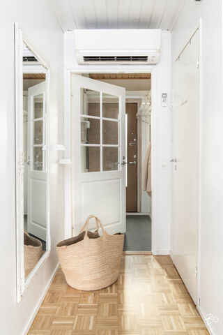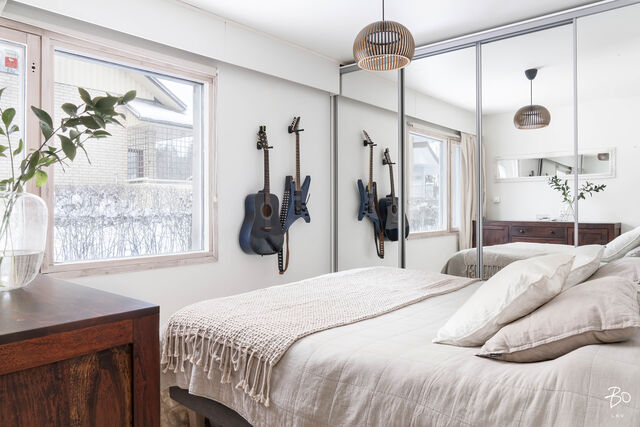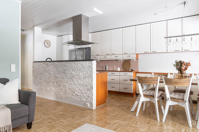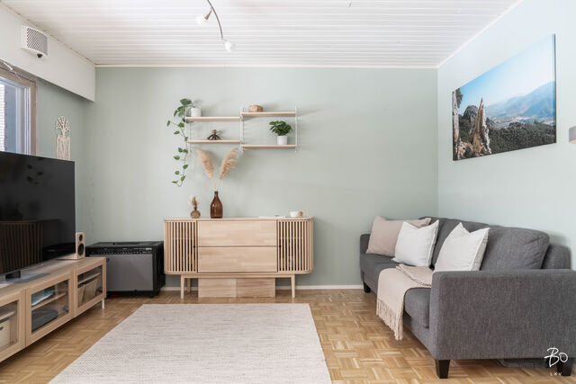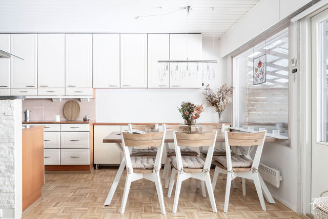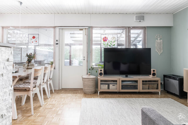 Tässä vuonna 1982 rakennetussa yksitasoisessa rivitalohuoneistossa yhdistyvät kodikas tyyli ja siististi hoidetut pinnat. Yhdistetyn olohuone-keittiön, makuuhuoneen, lastenhuoneena toimivan tilan ja saunan kokonaisuudessa on toimiva pohjaratkaisu, joka mahdollistaa käytännöllisen ja viihtyisän arjen. Kylpyhuoneen yhteydessä oleva oma sauna kruunaa kokonaisuuden ja tarjoaa rentoutumismahdollisuuden kiireisen arjen keskelle. Suurehkolla takapihalla on osittain katettu terassi ja ulkoporeamme, joka tuo luksusta arkeen. Lisäksi kahden kylmän varaston ansiosta tilaa säilytykseen löytyy runsaasti.