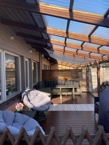 2018 rakennettu terassin lisäosa sekä ulkoporeallas takapihalle