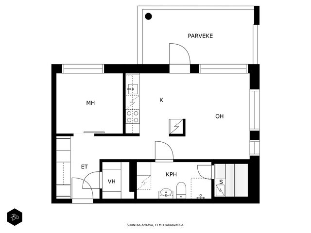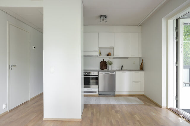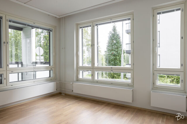 Tilava olohuoneen ja avokeittiön yhdistelmä toimii erinomaisesti. Makuuhuoneen rauhallinen sijainti pohjoisen puolella takaa mainiot yöunet. Kylpyhuoneessa on pesukoneliitäntä ja oman saunan lämmössä voit rentoutua pitkän päivän päätteeks. Lasitetulta parvekkeelta voi ihastella kaunista puistomaisemaa ja nauttia ulkoilmasta aikaisesta keväästä myöhäiseen syksyyn saakka. Asunnossa on erinomaiset säilytystilat, kuten tilava vaatehuone sekä eteisen kaapistot.