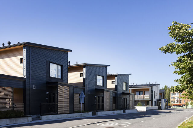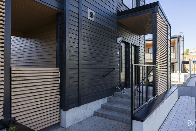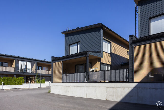 Alakerrassa avautuu tyylikäs avokeittiö, jonka yhteydessä on ruokailutila. Valoisa olohuone toimii viihtyisänä oleskelualueena, josta on käynti suojaisalle terassille ja piha-alueelle. Yläkerrassa on kolme monikäyttöistä makuuhuonetta ja kylpyhuoneen yhteydessä oleva sauna tuo ripauksen luksusta arkeen.