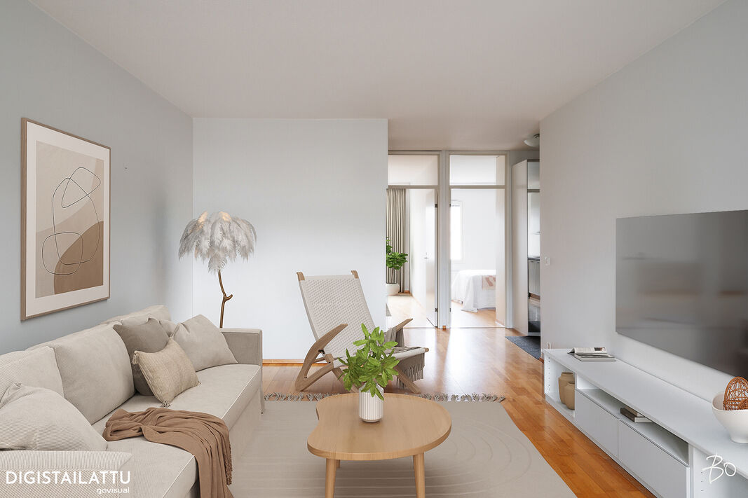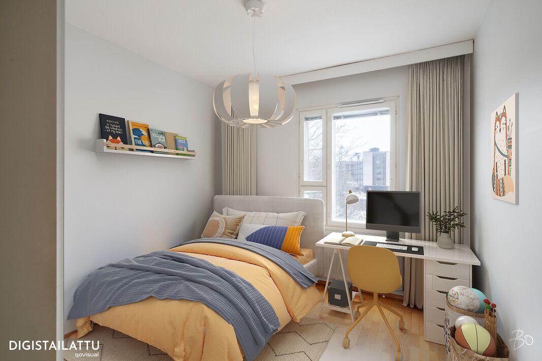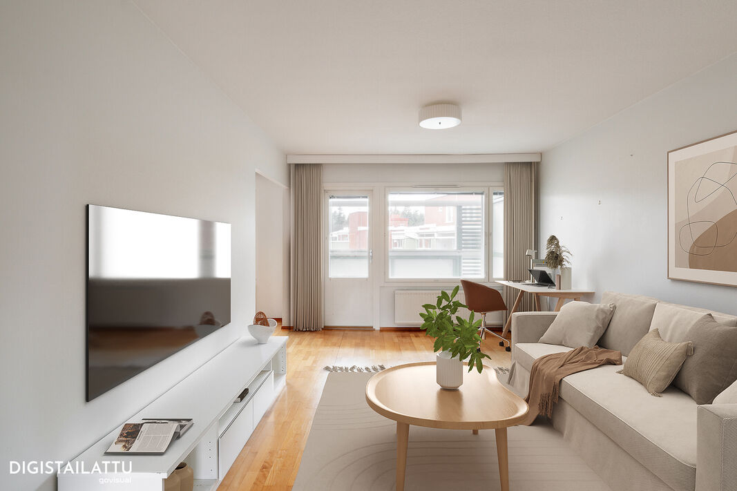 Tämä viihtyisä kerrostalokolmio tarjoaa valoisat huoneet, jotka luovat erinomaiset puitteet kodikkaalle asumiselle. Asunnon pohjaratkaisu on toimiva, ja se käsittää kolmen huoneen lisäksi keittiön ja kylpyhuoneen. Tämä asunto sijaitsee mukavasti viidennessä kerroksessa, tarjoten rauhalliset näkymät ja runsaasti luonnonvaloa.