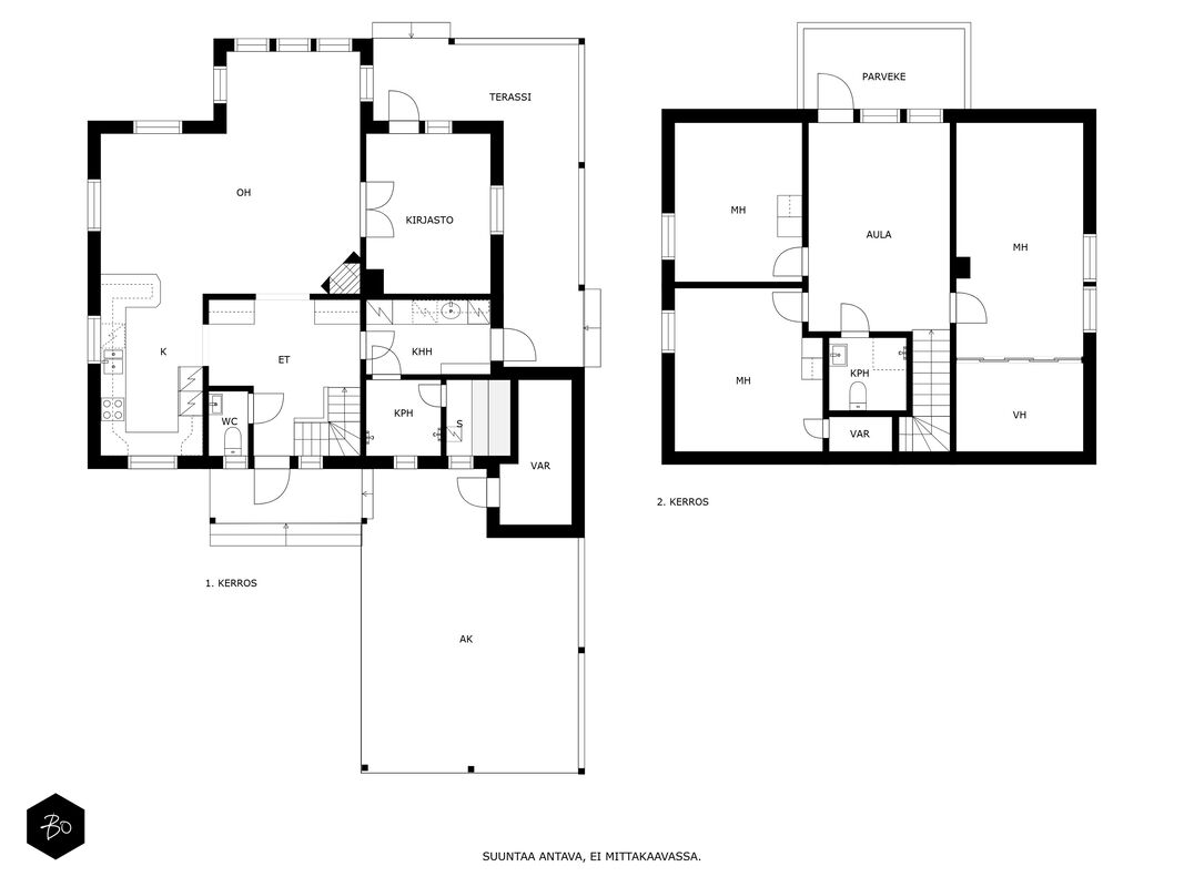 huom. huoneistoalaan ei lasketa alle 1600mm jäävän huonekorkeuden alalta (yläkerran viistokattojen ala)
