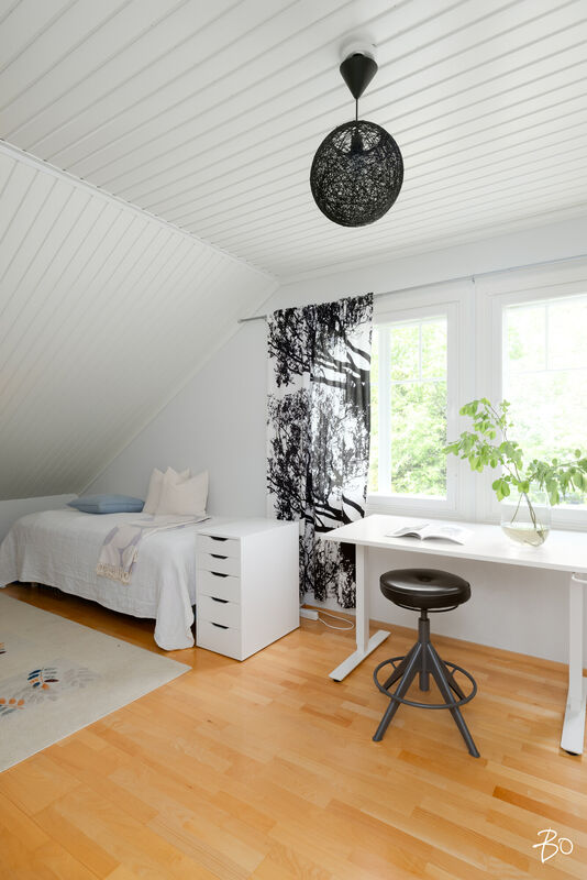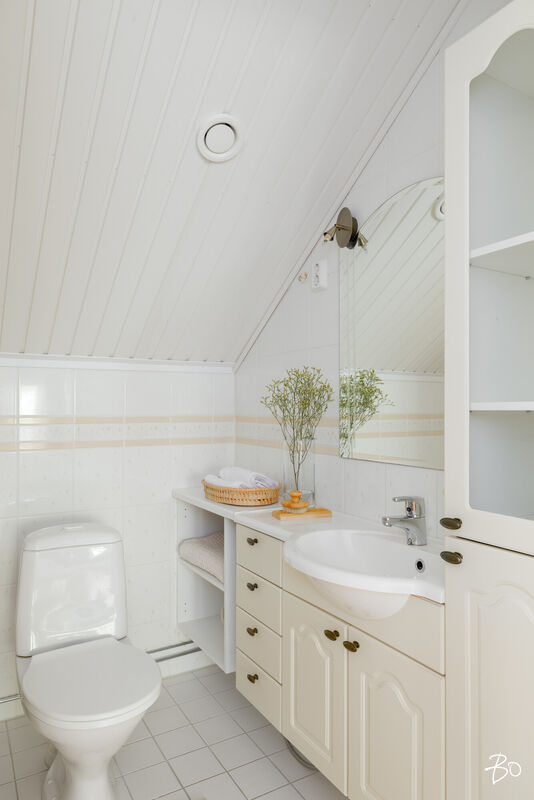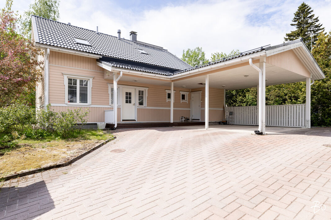Yläkerrassa on tämän kodin kolme reilun kokoista, vinokattoista ja persoonallista makuuhuonetta sekä tv-huone. Autokatoksessa on hyvin tilaa kahdelle autolle, ja varastotilaa tästä kodista löytyy mukavasti.