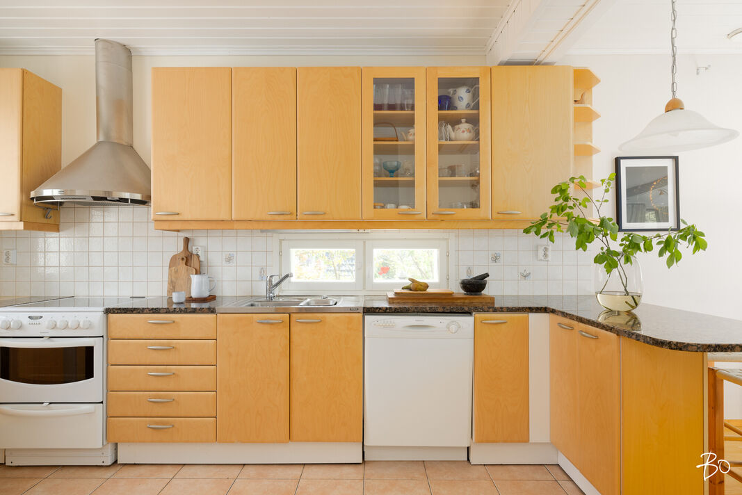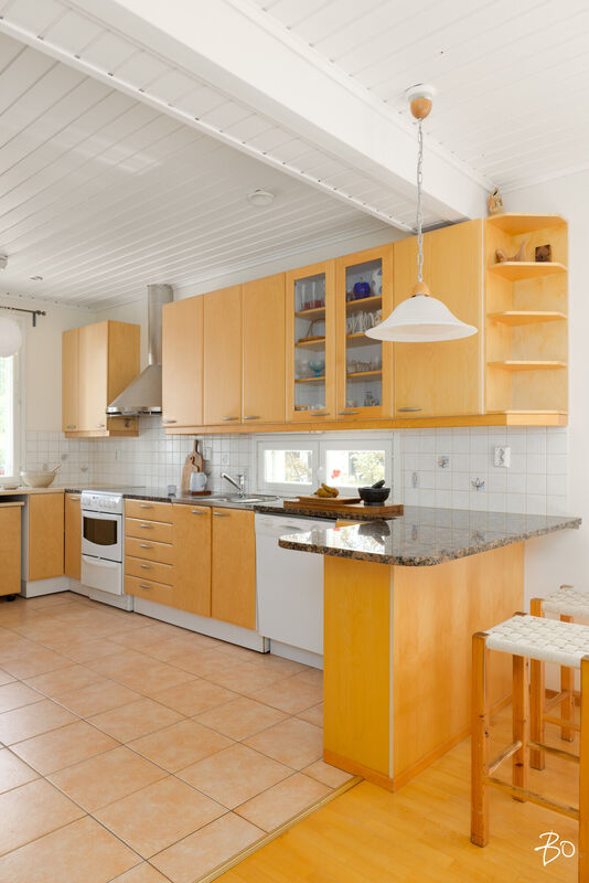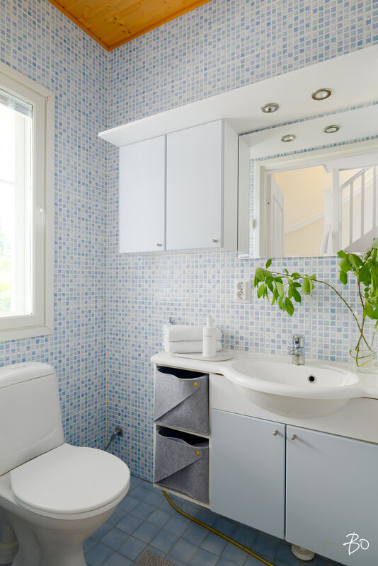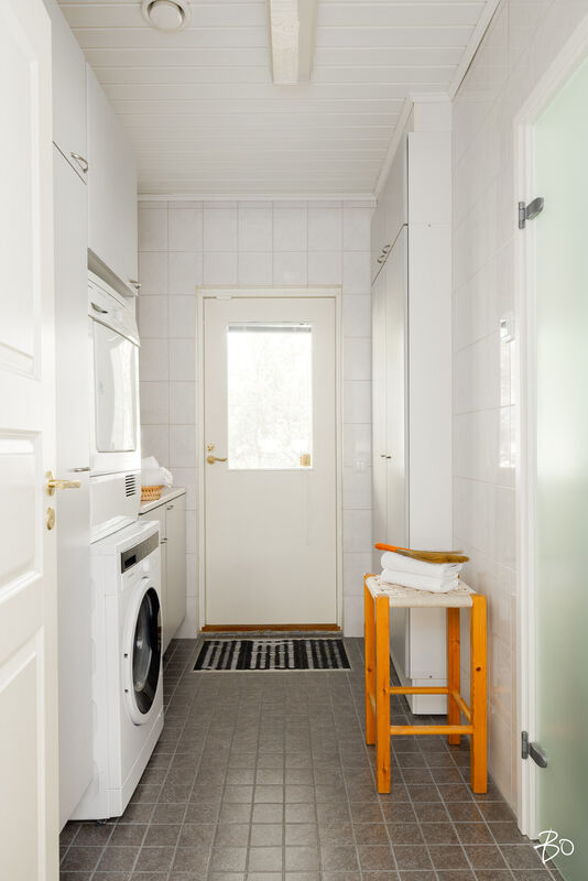 Varustus: pesukoneliitäntä, pesuallas, pyykkikaapit, pöytätaso