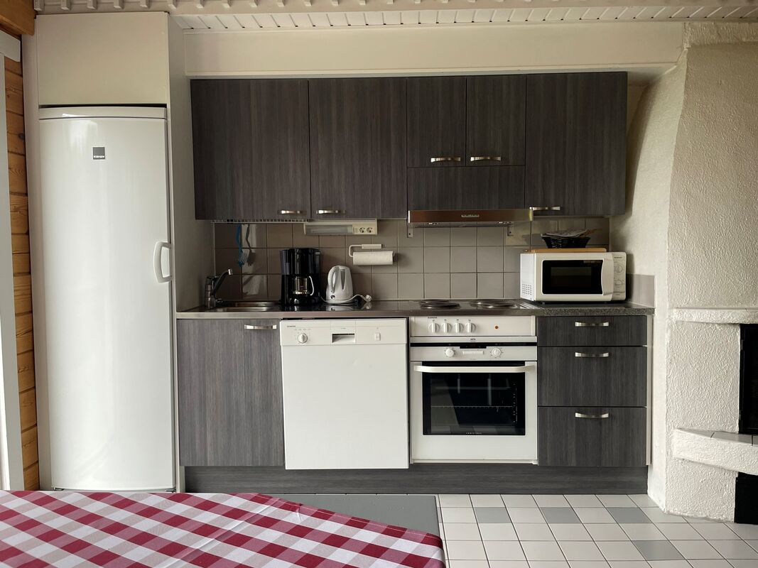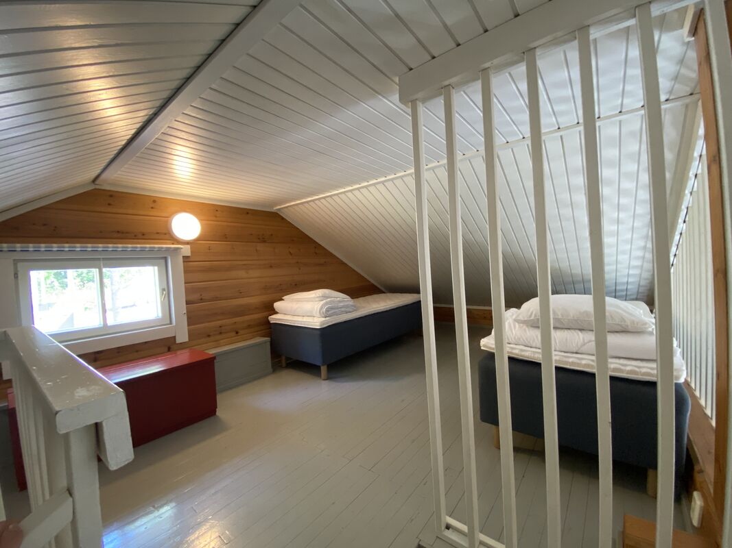 Huvilassa on hyvä varustus ja siinä on erillinen makuuhuone alakerrassa ja yläkerrassa iso parvi johon mahtuu useampia vuoteita. Huvilaan kuuluu lisäksi sähköpistokkeella varustettu autokatos, jossa on myös tilava varasto.