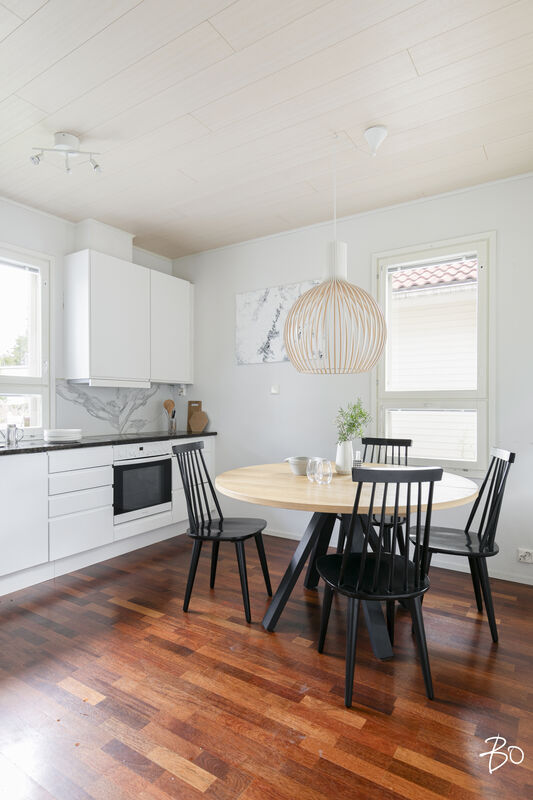 Skandinaavinen tyyli hallitsee koko sisustusta, tarjoten harmonian tunnetta ja ajattoman eleganssin. Tilaratkaisut ovat monipuoliset, mikä tarjoaa runsaasti vaihtoehtoja perheen kaikkiin elämänvaiheisiin koti tuntuu ja on tilavampi kuin neliöt antaa ymmärtää. Lisäksi alakertaan on juuri valmistunut upea spa-osasto, joka tuo arkeen ripauksen ylellisyyttä ja rentoutumista.