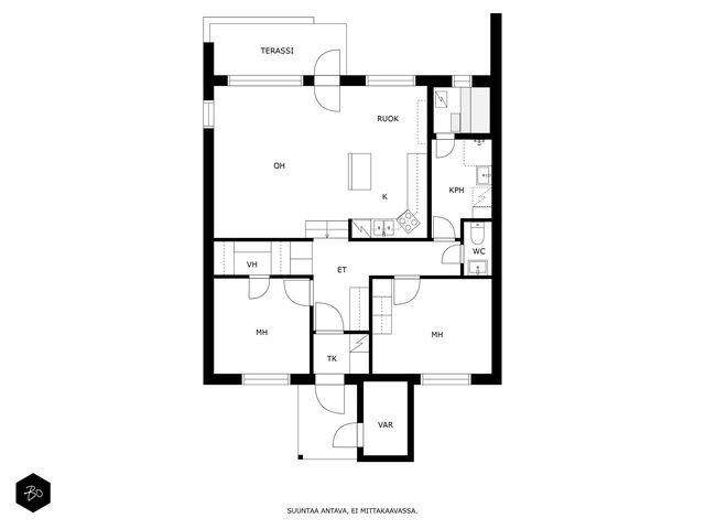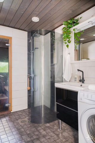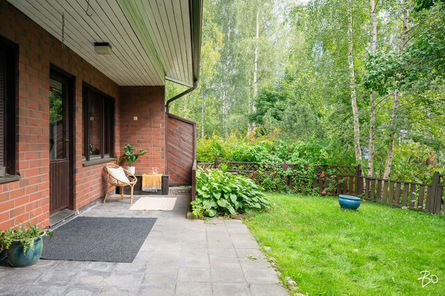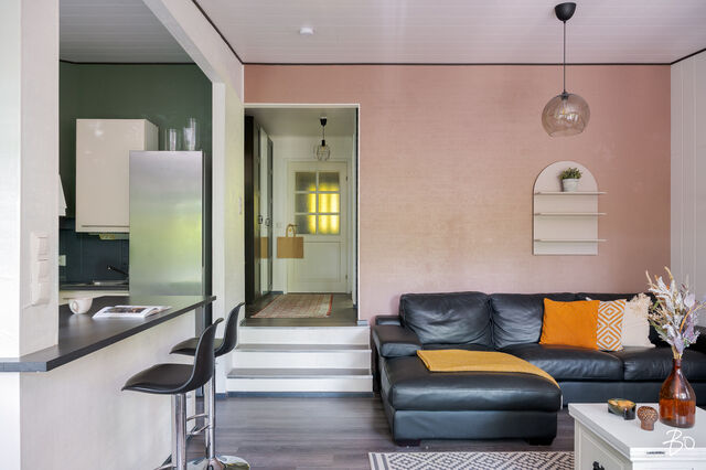 Tämän kodin viehätys on oleskelutilassa, joka yhdistää olohuoneen, keittiön ja mukavan pihan yhdeksi kokonaisuudeksi tehden asumisesta laadukasta ja yhdessäolosta luontevan mukavaa. Kahteen tasoon porrastettu koti mahdollistaa korkean ja valoisan olohuoneen sillä ikkunat antava pienelle piha-alueelle, jonka ilmansuunta on aurinkoon ja etelään. Moderni lämpimän tunnelman keittiö saarekkeineen on remontoitu 2016 kuten myös kodin kylpyhuone, sauna ja wc. Kaksi makuuhuonetta ovat myös pinnoiltaan hyvässä kunnossa ja toisesta löytyy oma vaatehuone. Säilytys- ja varastotilaa löytyy myös erillisestä varastosta, joka on kätevästi asunnon sisäänkäynnin vieressä.