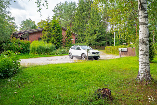 Koulu, päiväkoti, leikkipuisto ja lähikauppa ovat lähellä ja näihin lapsille turvallista kulkea, sillä ei tienylityksiä. Alue on todella rauhallinen ja siellä on hienot ulkoilumahdollisuudet, metsä ja hiihtoladut vieressä. Ja vaikka keskusta ei vieressä olekaan, autolla sinne ajaa alle vartissa ja julkinen liikenne toimii, bussi menee useamman kerran tunnissa.