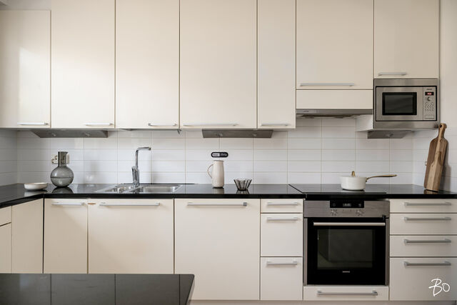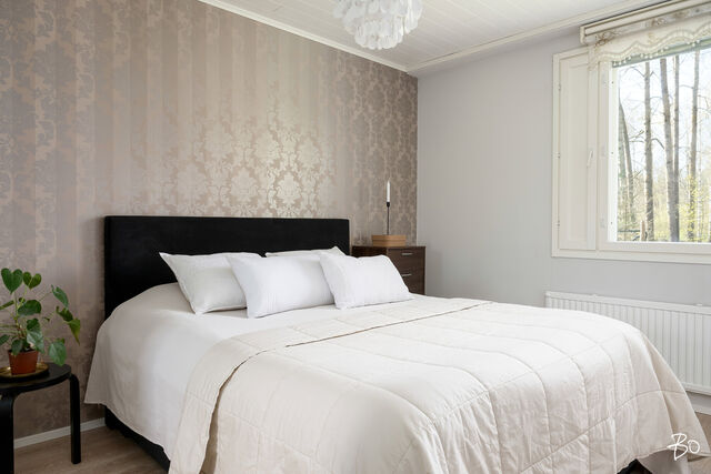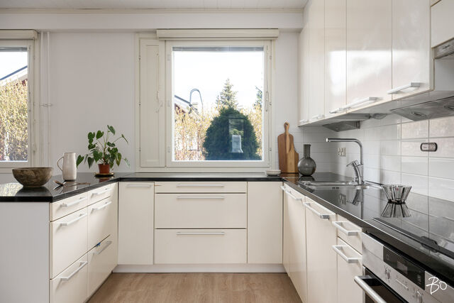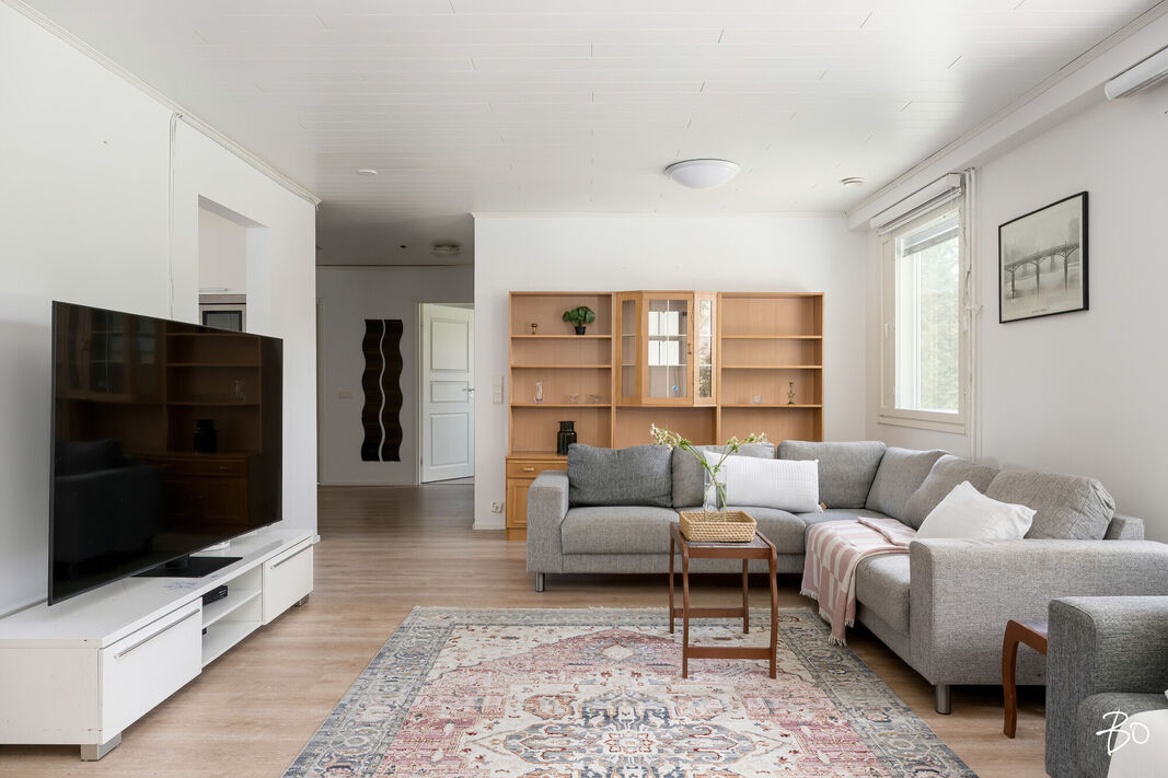 Valoisa olohuone yhdistyy avokeittiöön muodostaen kodin sydämen, jossa on tilaa niin rentoutumiselle kuin yhdessäololle. Kolme makuuhuonetta tarjoavat joustavuutta asumiseen, ja lämmin varasto toimii mainiona harraste- tai työtilana. Tyylikäs kylpyhuone tuo arkeen ripauksen spa-tunnelmaa.