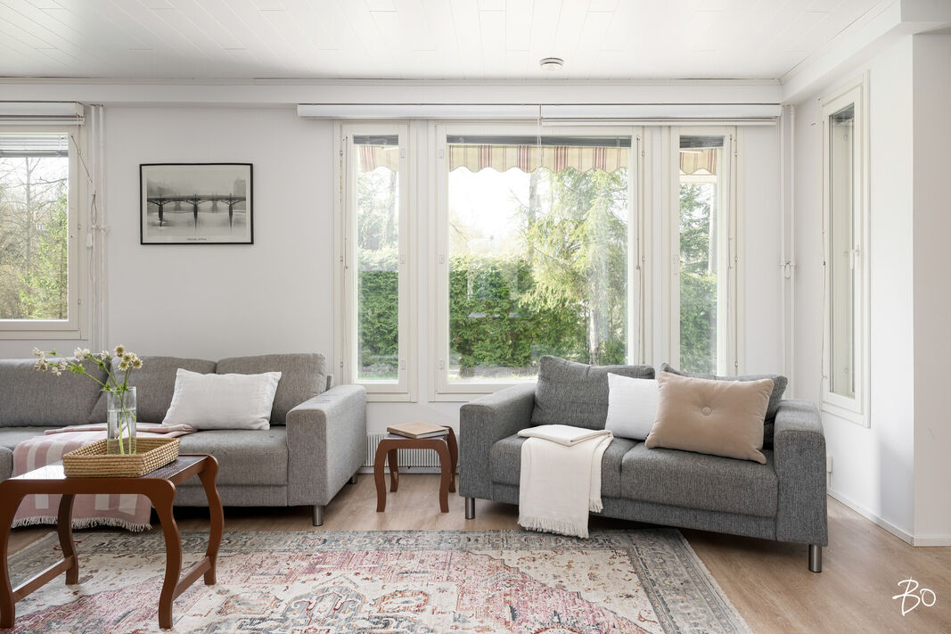 Sijainti ei voisi olla parempi: koulu, päiväkoti ja lähikauppa ovat kävelymatkan päässä, ja ulkoilumahdollisuudet alkavat kotiovelta. Tässä kodissa yhdistyvät arjen helppous, luonnonläheisyys ja lämmin tunnelma.