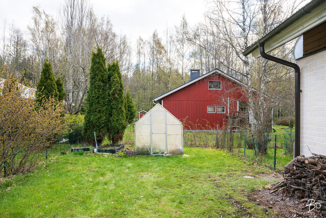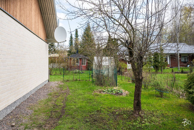 Koti sijaitsee omalla tontilla, ja suojaisa piha on kuin tehty lasten leikkeihin, kahvihetkiin tai puutarhaunelmien toteuttamiseen. Kiinteistö on huollettu ja pidetty hyvässä kunnossa.