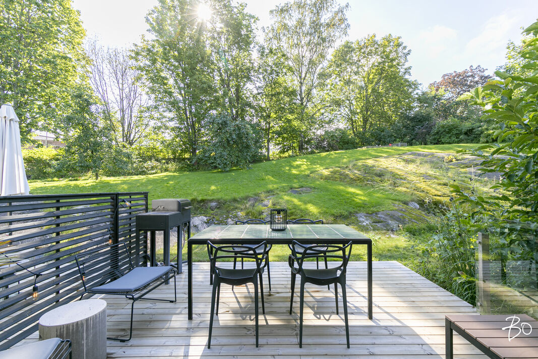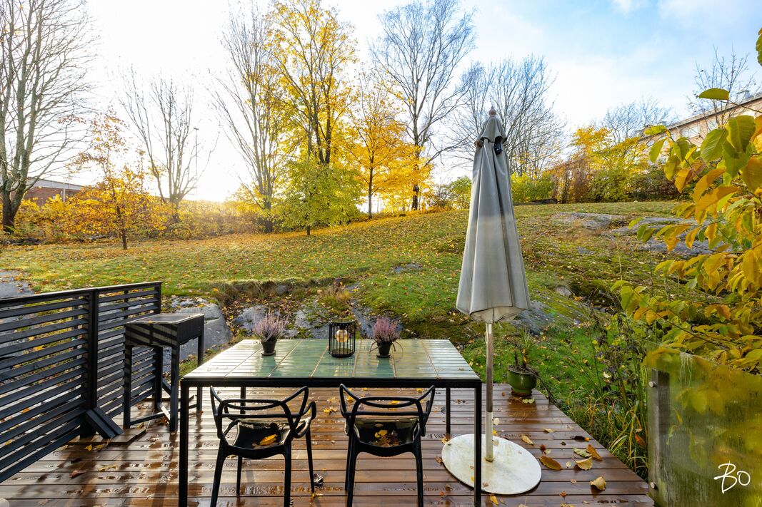 Huoneisto on osa hyvin hoidettua taloyhtiötä, jossa yhteisterassi tarjoaa viihtyisän keitaan keskellä kaupunkia. Yhtiöllä on käytössä myös yhteispiha, jossa on omenapuita, luumupuita ja päärynäpuita. Pihalla on myös pieni mansikkamaa.