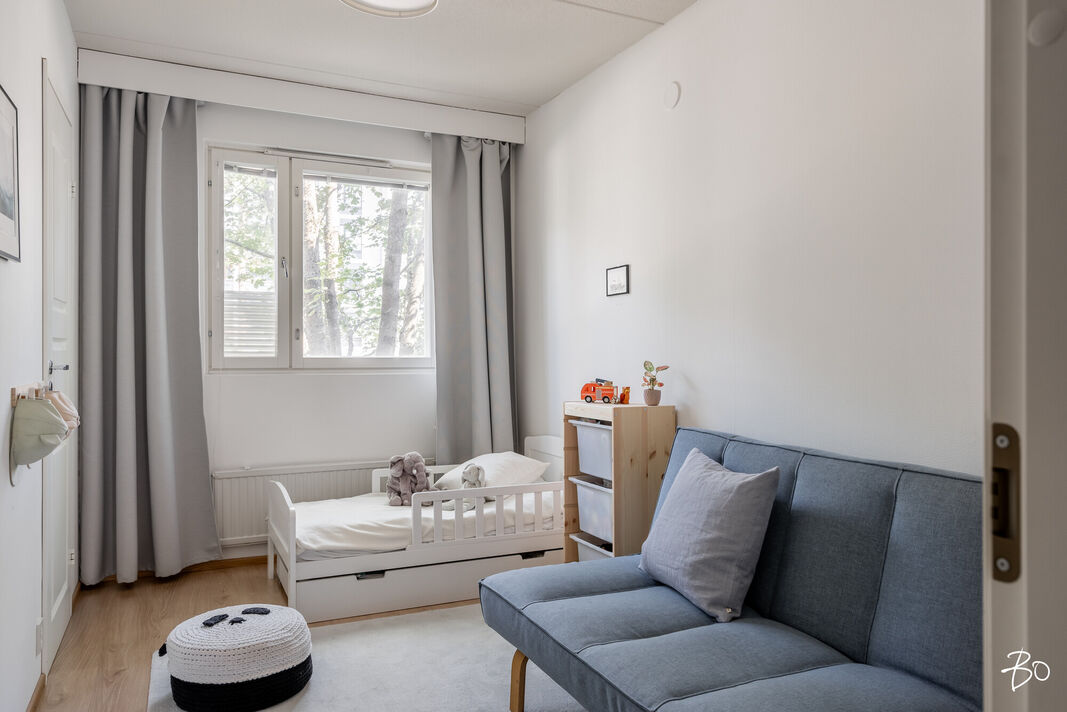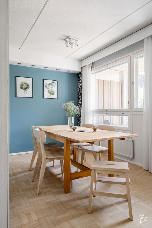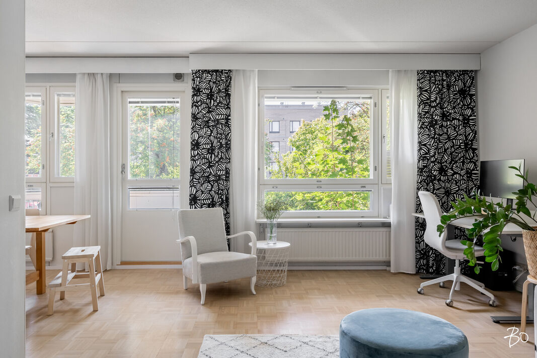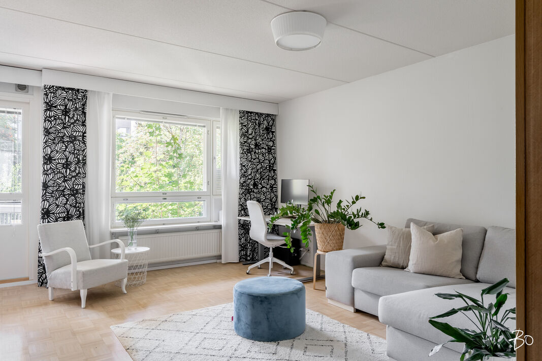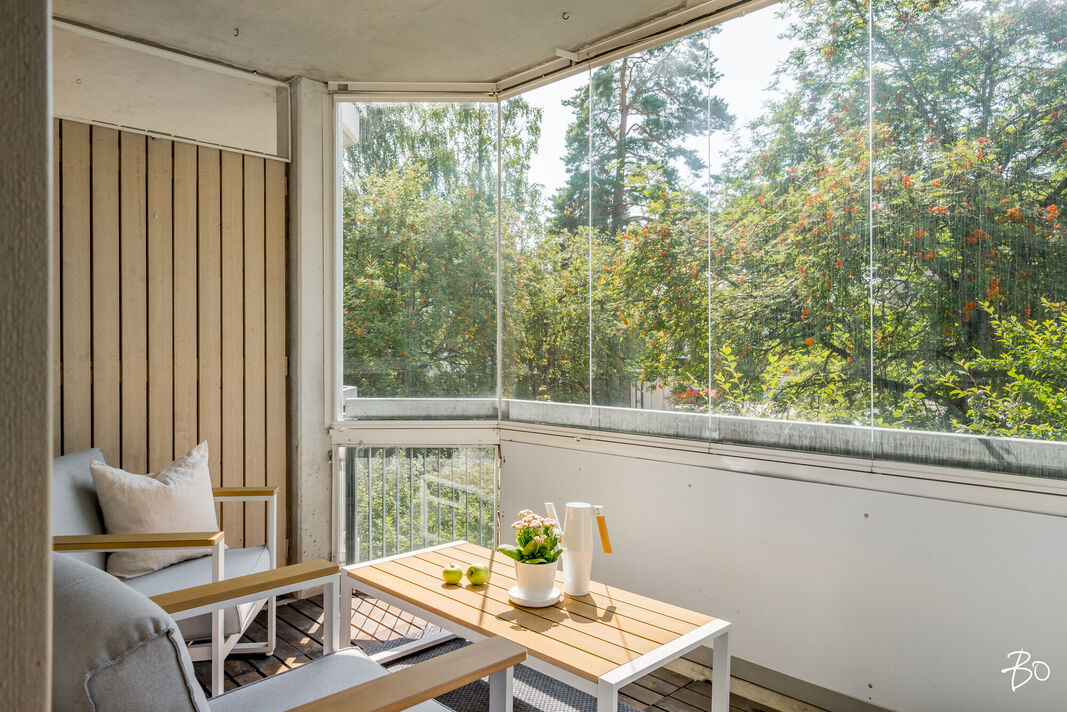 Tässä kerrostaloasunnossa on 4 huonetta, keittiö, kylpyhuone, sauna ja erillinen wc. Tilat on suunniteltu huolella niin, että ne palvelevat monenlaisia tarpeita ja toiveita. Kaksi sisäänkäyntiä mahdollistaa myös työt kotoa käsin. Vuonna 1985 käyttöön otetussa asunnossa yhdistyvät ajanmukaiset mukavuudet ja toimivat ratkaisut. Erityisenä lisänä on lasitettu parveke, joka tarjoaa runsasta luonnonvaloa ja ylimääräistä tilaa esimerkiksi oleskeluun tai vaikka kesäkeitaaksi.