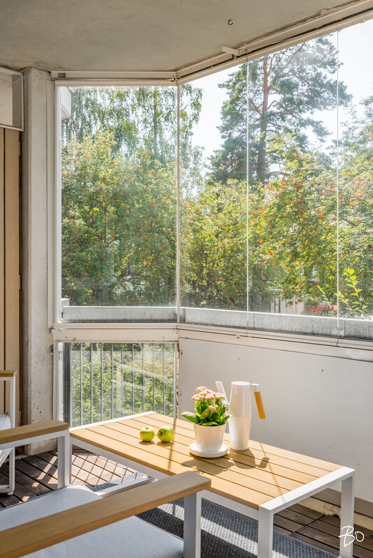 Käynti lasitetulle parvekkeelle.