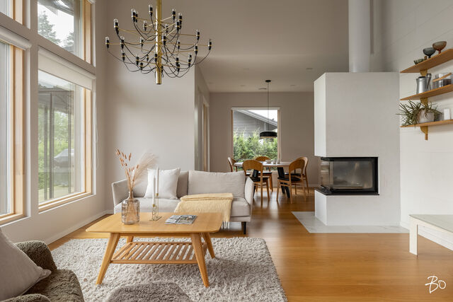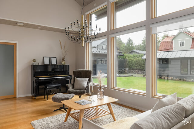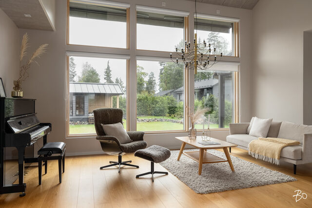 Sanat, jotka kuvaavat hyvin tätä kotia ovat kaunis, hillitty, laadukas, moderni ja ajaton. Näiden lisäksi tästä kodista on tehty arjessa toimiva sekä akustisesti miellyttävä.