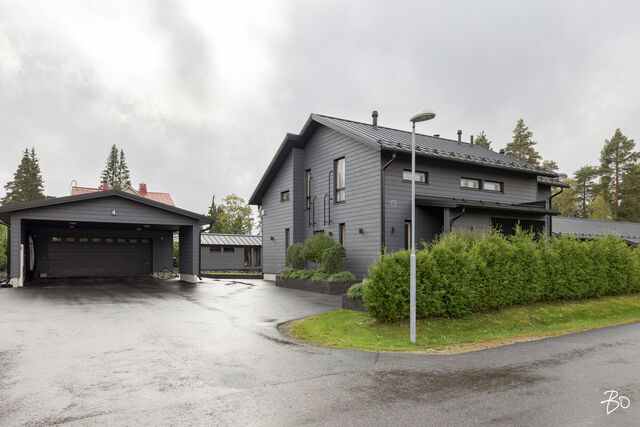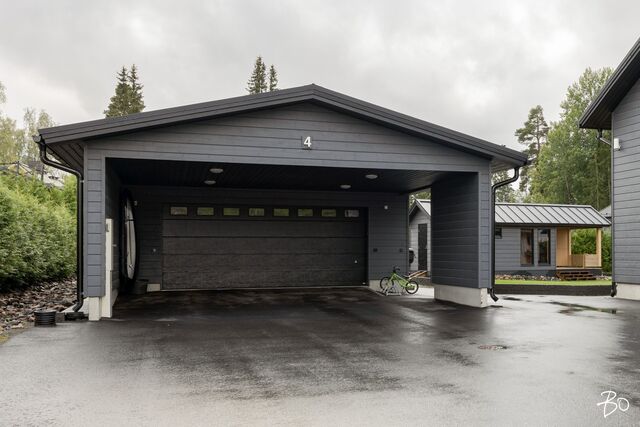 Älylukot 2 kpl (arkieteinen ja autotalli). Autotallissa on 5,4 m leveä nosto-ovi, sähkökäyttöinen, kaukosäätimellä (2 kpl) ja myös näppäinlukko.