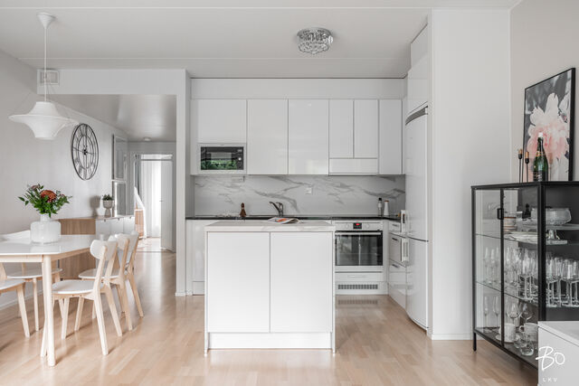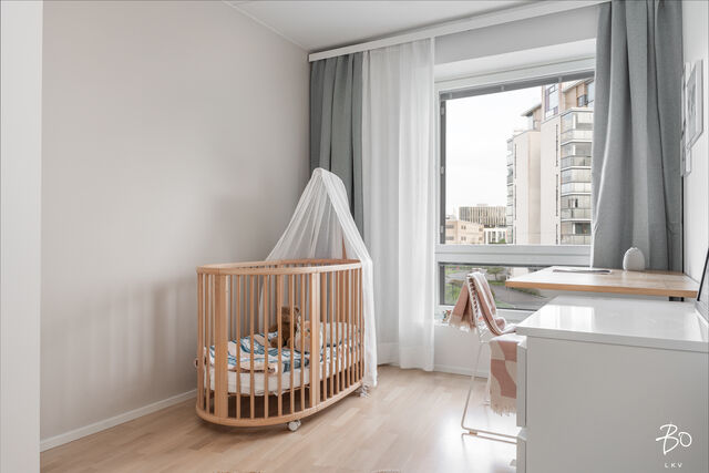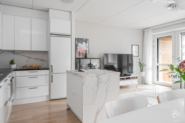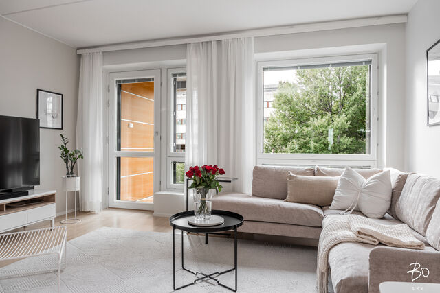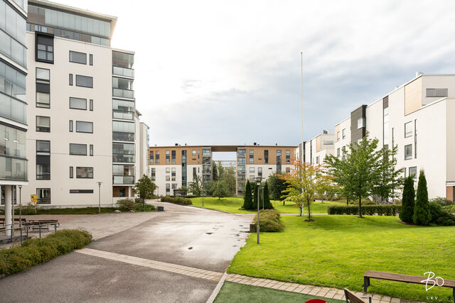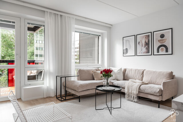 Tämä vuonna 2013 valmistunut kolmio yhdistää modernin asumisen mukavuudet ja Tapiolan viehättävän ympäristön. Kodin sydän on olohuoneen ja avokeittiön muodostama yhtenäinen tila, jossa suuret ikkunat tuovat runsaasti valoa ja lasitettu parveke jatkaa oleskelutilaa lämpiminä kuukausina. Oma sauna tekee arjesta astetta parempaa - täällä voit päättää päivän rentouttaviin löylyihin omassa rauhassa.