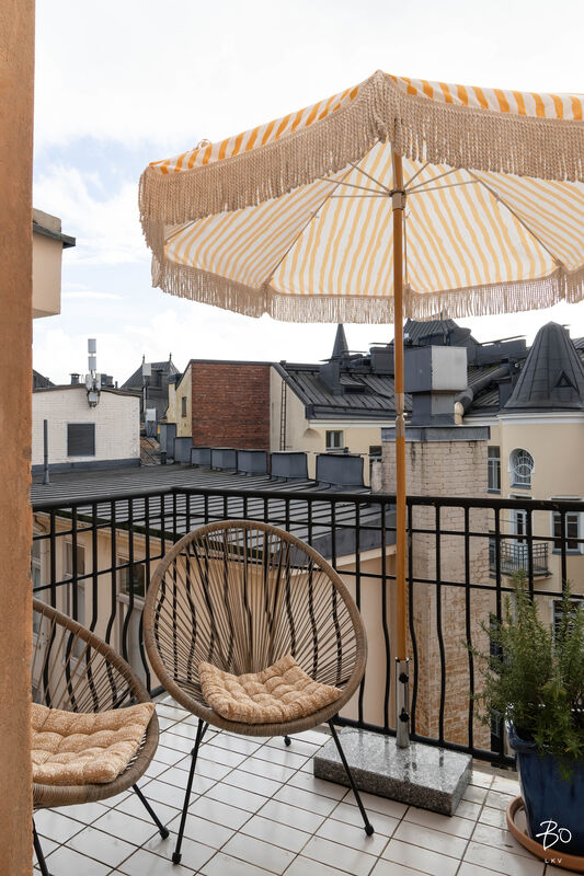 Parveke tuo lisätilaa ja näkymät kaupungin ylle antavat arkeen uudenlaista perspektiiviä ja sieltä avautuvat viehättävät kattonäkymät paikka, jonne tekee mieli palata.