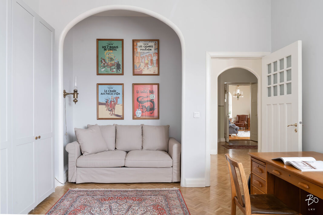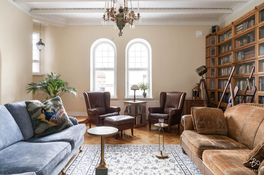 Viidennessä kerroksessa sijaitseva asunto yhdistää alkuperäisen arkkitehtuurin hienostuneen karisman ja modernin, korkeatasoisen remontin saumattomasti. Täällä yksityiskohdat eivät ole vain koristeita ne kertovat tarinaa.