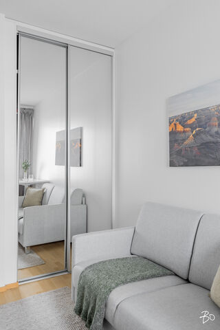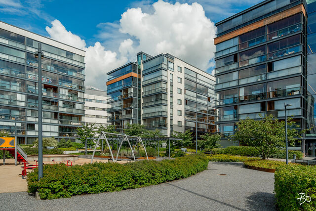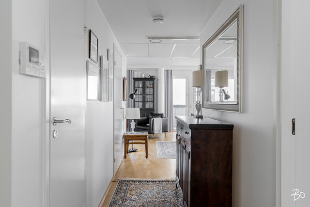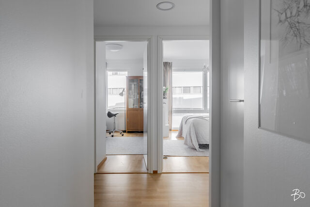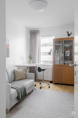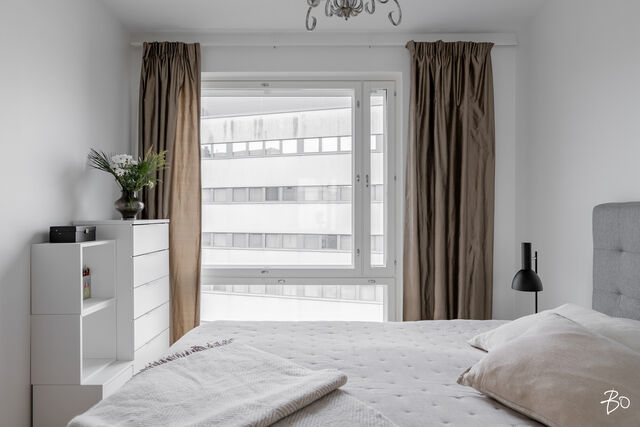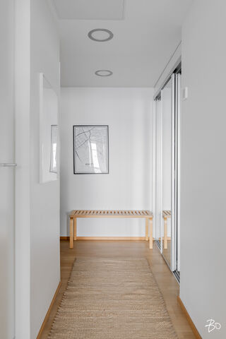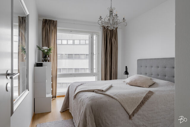 Hulppean parvekkeen lisäksi huoneiston parhaisiin puoliin lukeutuu kiistatta isot kahteen suuntaan olevat ikkunat, jotka tekevät huoneistosta ihanan valoisan. Huoneistossa on vesikiertoinen lattialämmitys ja kesähelteillä helpotusta tuo kaukokylmän avulla toimiva huoneistokohtainen viilennys.
