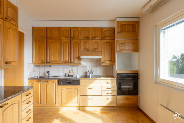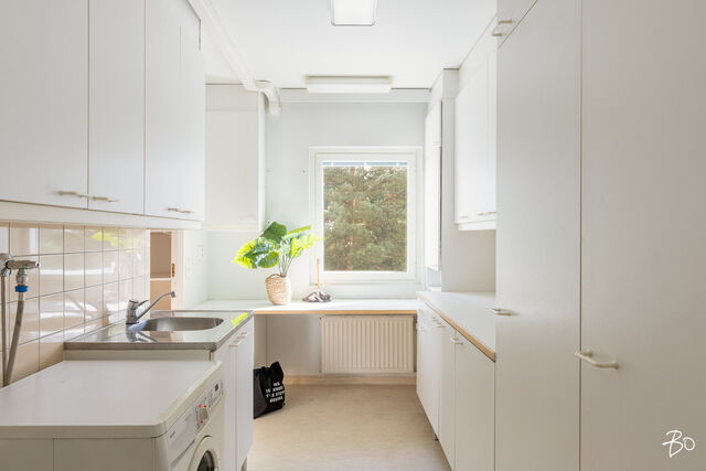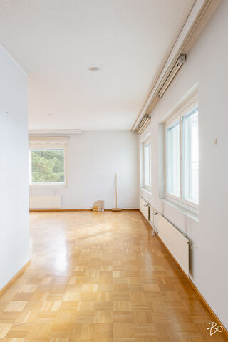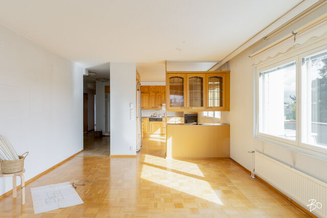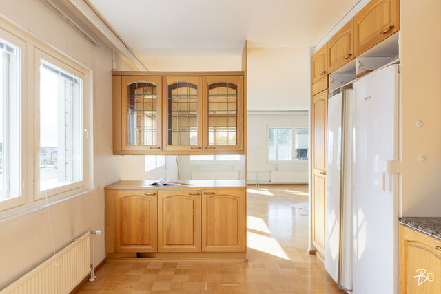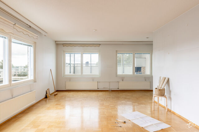 Jo sisään astuessa huomaa tilojen monipuolisuuden. Suuret ikkunat päästävät valon kulkemaan huoneesta toiseen ja kehystävät näkymät kaupungin ylle. Olohuone ja ruokailutila muodostavat yhdessä sydämen, jonka ympärille voi rakentaa kodin sykkeen - tilan, jossa juhlat jatkuvat pitkälle iltaan ja arjen hetket löytävät oman paikkansa. Kolme makuuhuonetta, takkahuone ja saunaosasto tarjoavat puitteet luoda tästä yhtä hyvin urbaanin edustuskodin kuin kodikkaan perheasunnonkin.
