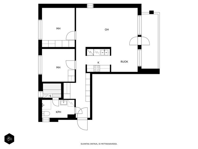 Tilava ja valoisa kolmio toimivalla pohjaratkaisulla!