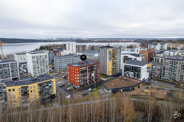 Vuonna 2021 valmistunut koti hurmaa valoisuudellaan. Asunnossa avokeittiö ja olohuone ovat yhtä isoa yhtenäistä tilaa. Vaaleassa keittiössä on hyvin säilytystilaa yhdellä pitkällä seinällä sekä suuressa saarekkeessa. Olohuoneesta on käynti isolle lasitetulle parvekkeelle, josta avautuu komeat maisemat Partolan suuntaan.