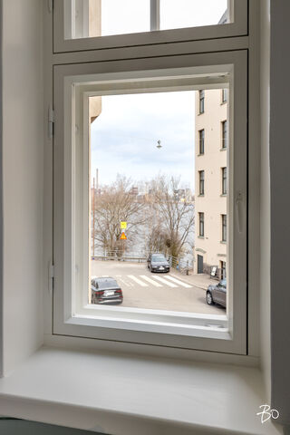 Yhtiössä on juuri valmistumassa mittava ikkunaremontti, joka on tässä asunnossa jo valmis. Ikkunat ovat todella upeat ja onnistuneet talon tyyliin täydellisesti.