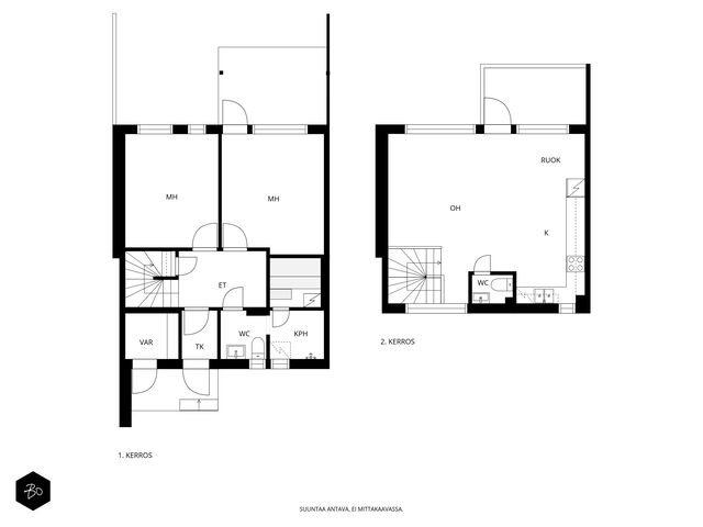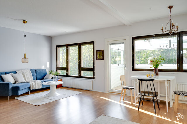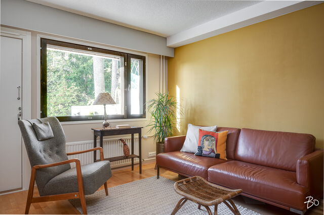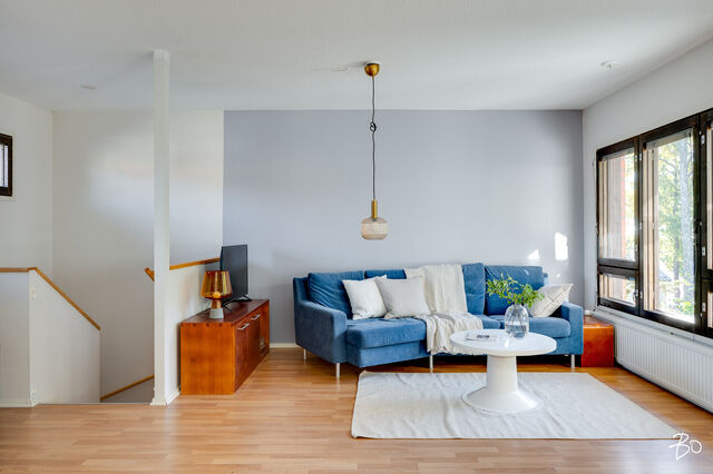Hirvensalossa odottaa viihtyisä kahteen kerrokseen rakentuva rivitalokoti, joka tarjoaa 80 m² asumismukavuutta ja rauhallista arkea. Kodin sydämen muodostavat valoisa olohuone ja avokeittiö, joiden yhteydestä avautuu kulku lasitetulle parvekkeelle - näkymät kantavat kauniisti takapihalle ja kallioiseen metsikköön. Saattaapa täältä pilkahtaa mukavasti myös lähellä siintävä meri. Terassilla voi nauttia omassa rauhassa ja täältä voit lähteä suoraan metsälenkille.
